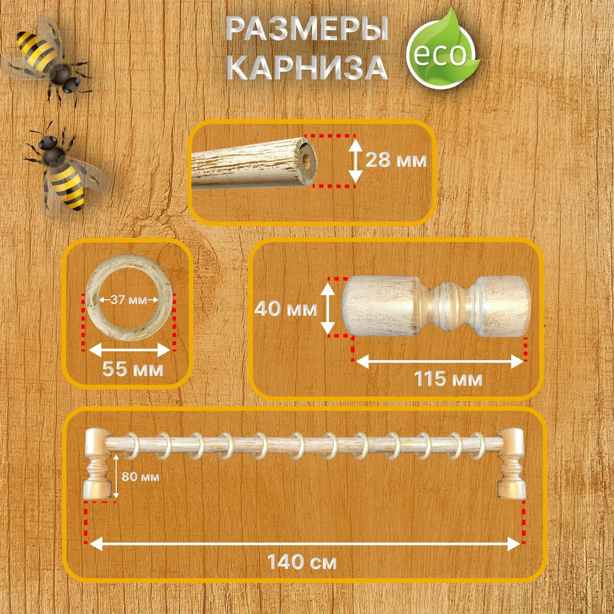 Карниз для штор 140 см сосна