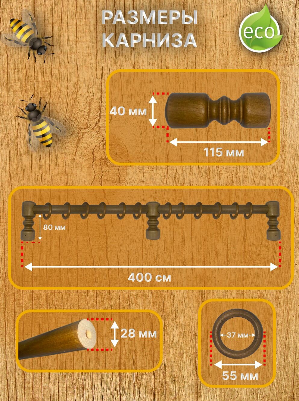 Кольца для карниза (дерево) с крючками на карниз д 28 мм-20шт