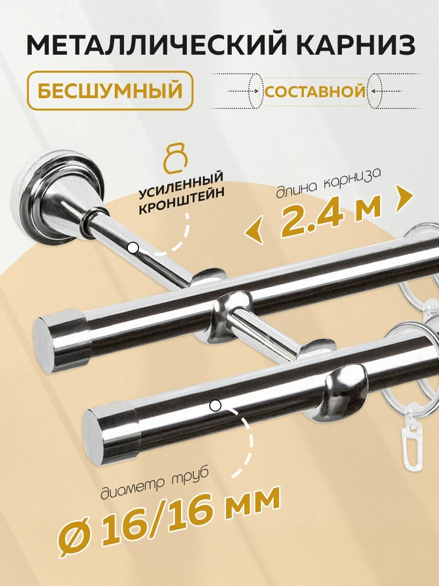 Карниз для штор двухрядный металлический гладкий "акко" 16/16 мм, длина 2,4 м