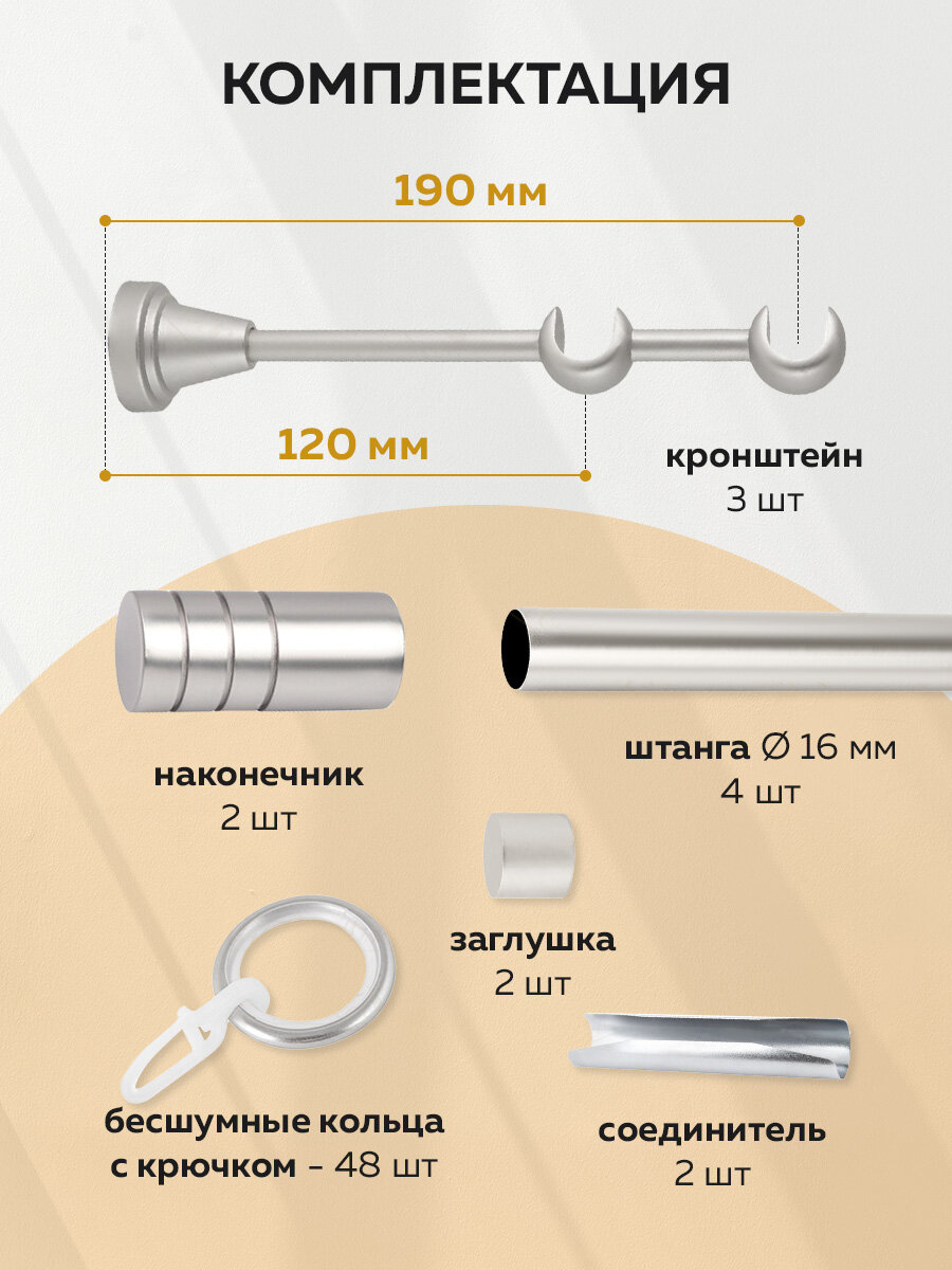 Карниз для штор "Mirtex Premium" 240 см однорядный, цвет хром, с бесшумными кольцами