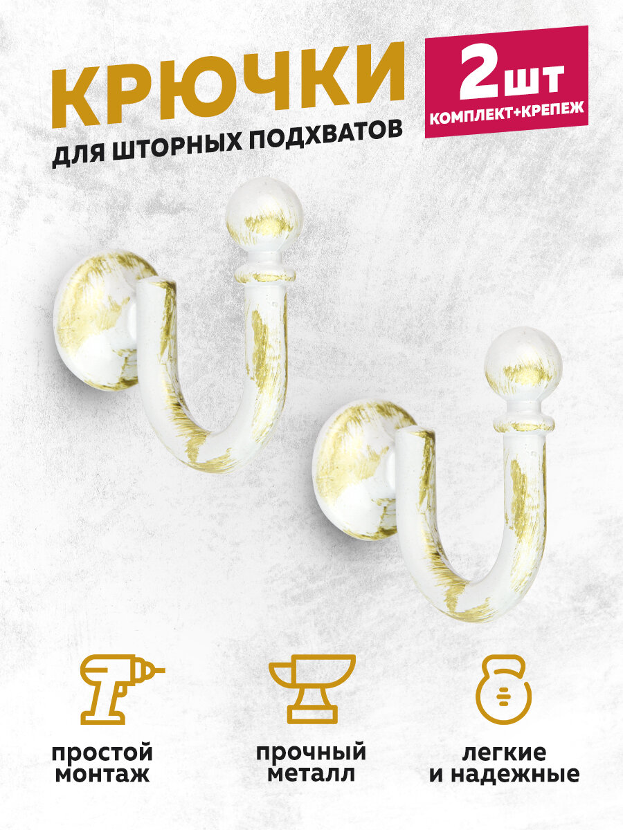 Крючки для штор Mirtex, 2 штуки, золотистые, металлические, для подхватов штор интересное:
