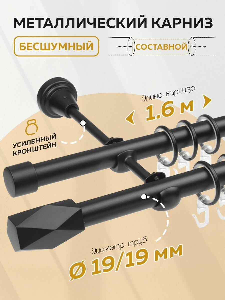 Карниз для штор Mirtex 160см Призма 1,9/1,9мм, металл, двухрядный, черный интересное: