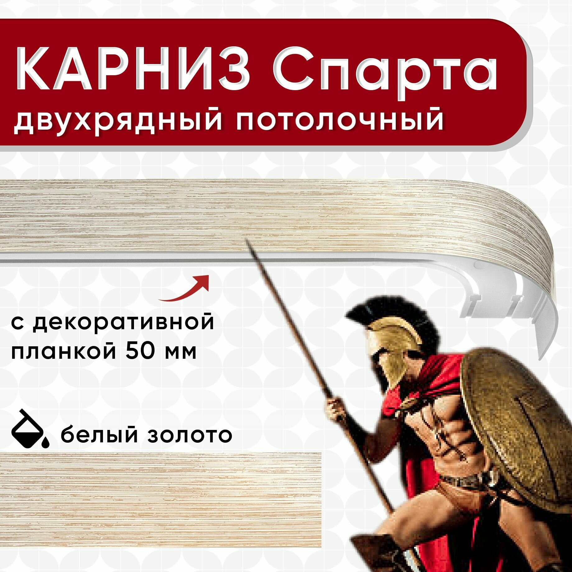 Карниз УЮТ двухрядный потолочный с декоративной планкой (бленда 50мм), пластмассовый, шинный Спарта белый/золото 250см