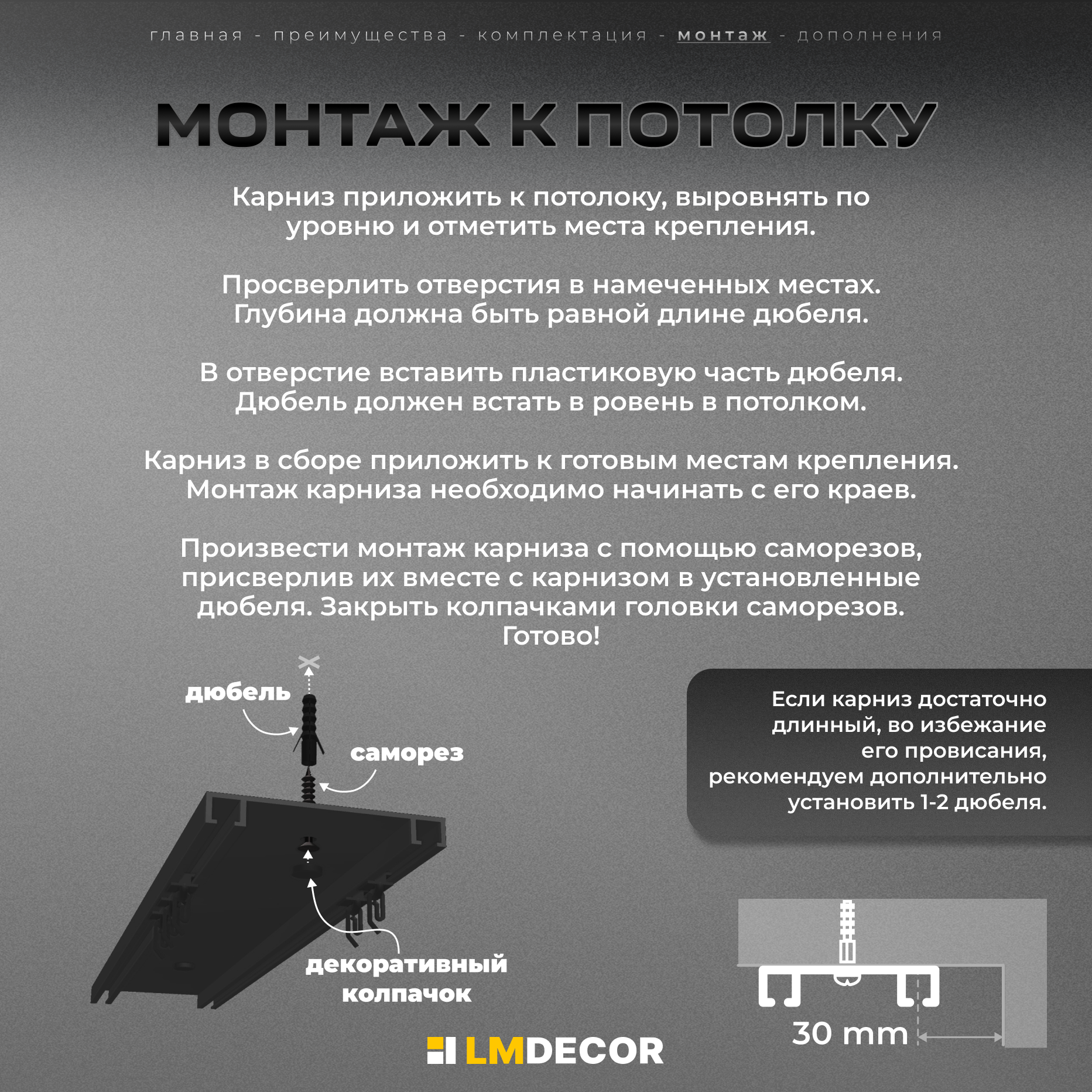 СохранитьКарниз для штор D6 алюминиевый двухрядный потолочный 180 см Черный LM DECOR интересное: