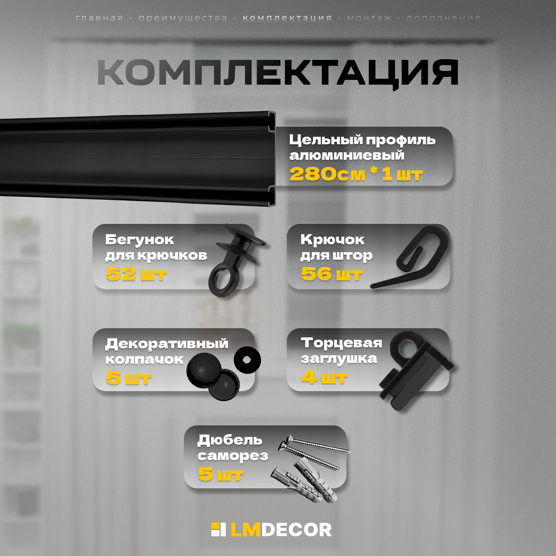 СохранитьКарниз для штор D6 алюминиевый двухрядный потолочный 280 см Черный LM DECOR интересное: