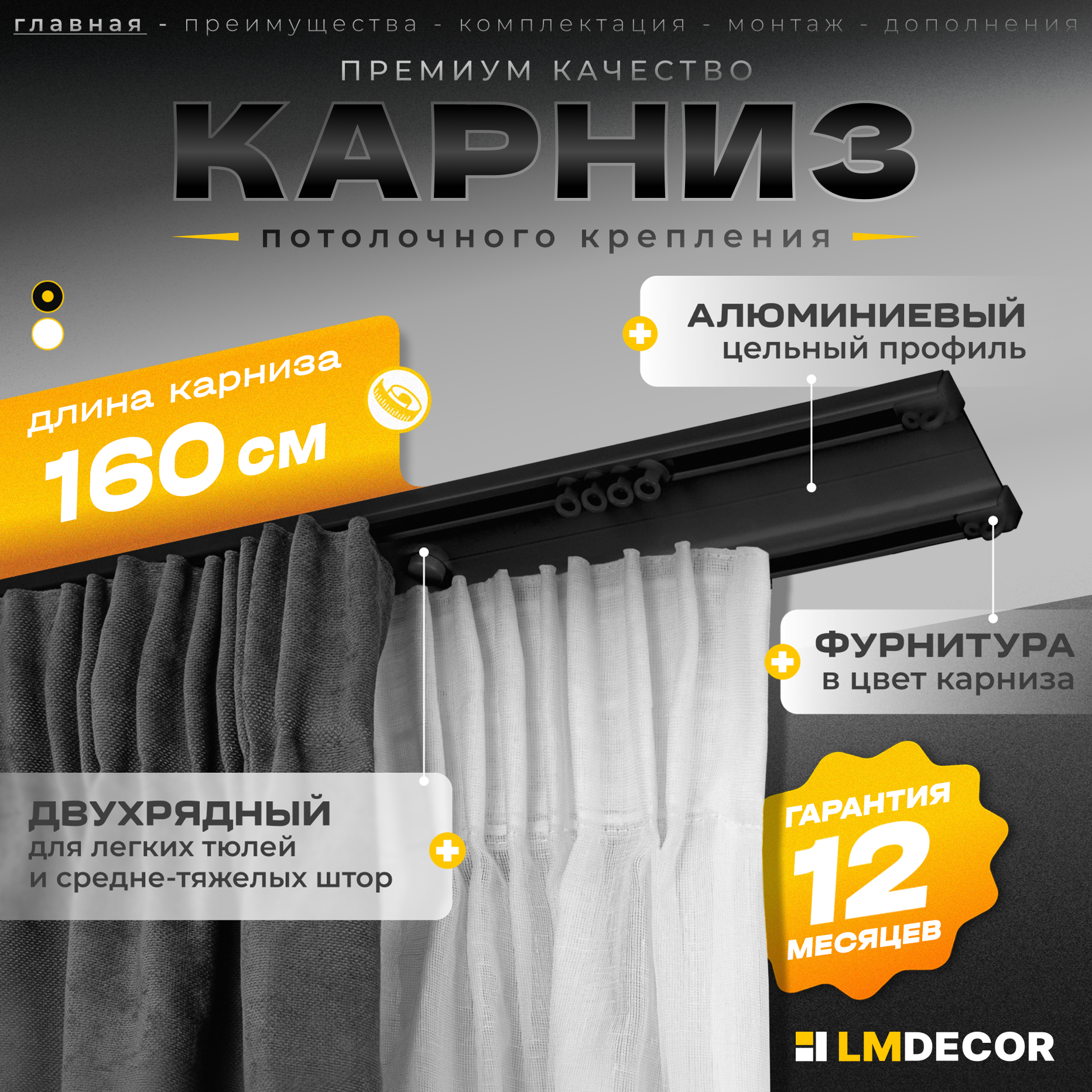 СохранитьКарниз для штор D6 алюминиевый двухрядный потолочный 160 см Черный LM DECOR интересное: