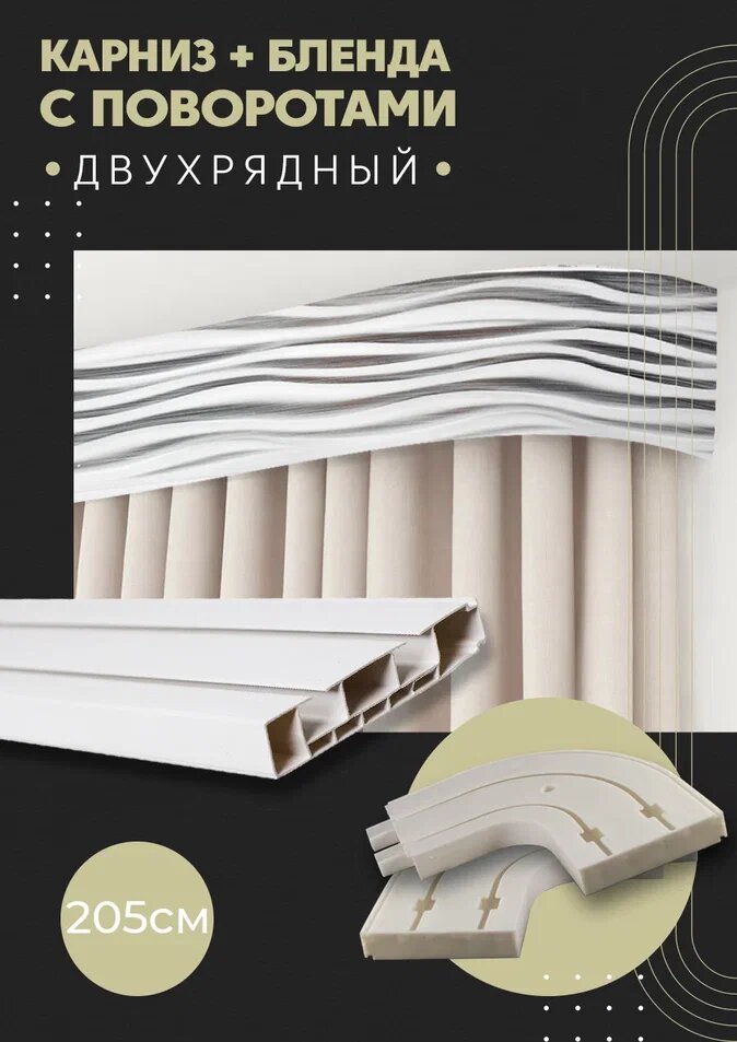 Карниз для штор двухрядный потолочный, 205 см, поворотный, с блендой кайман 100