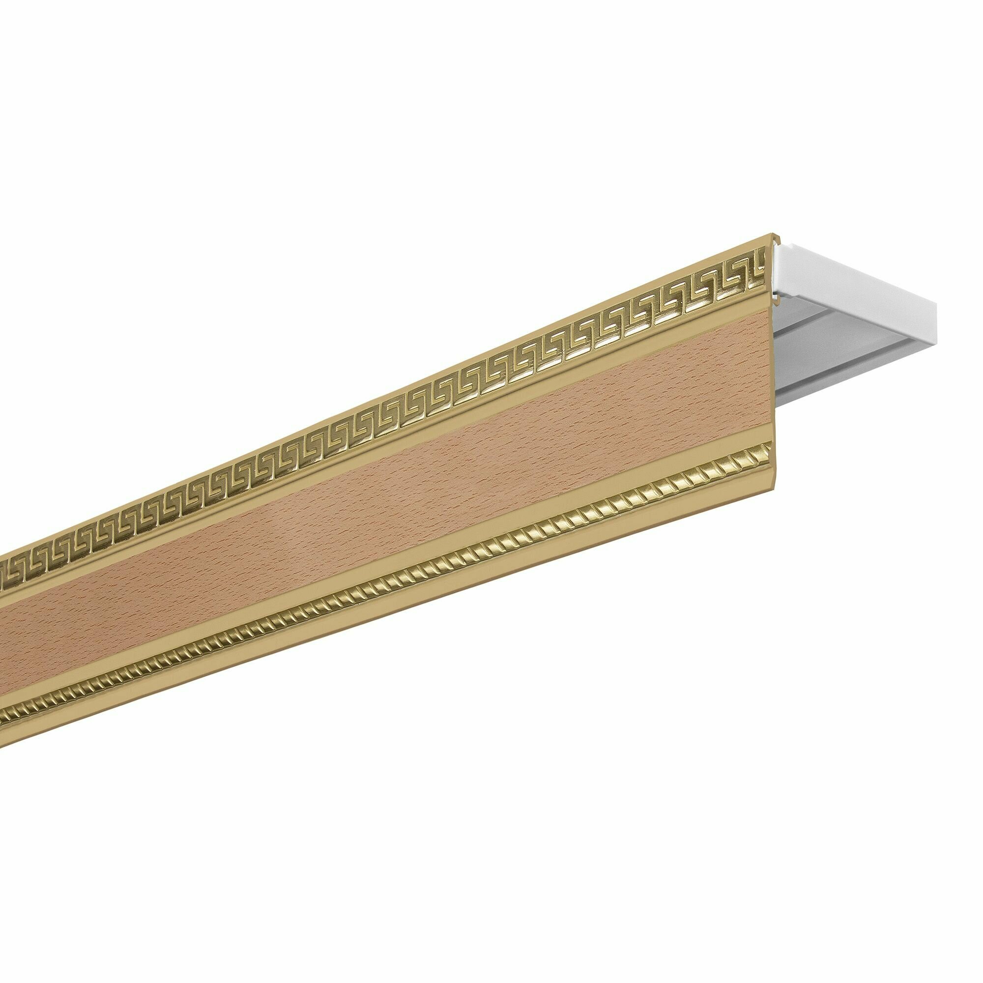 Карниз для штор и тюля двухрядный Уют потолочный с блендой 68мм, шинный, Тесей бук 240см, с боковинами 12 см