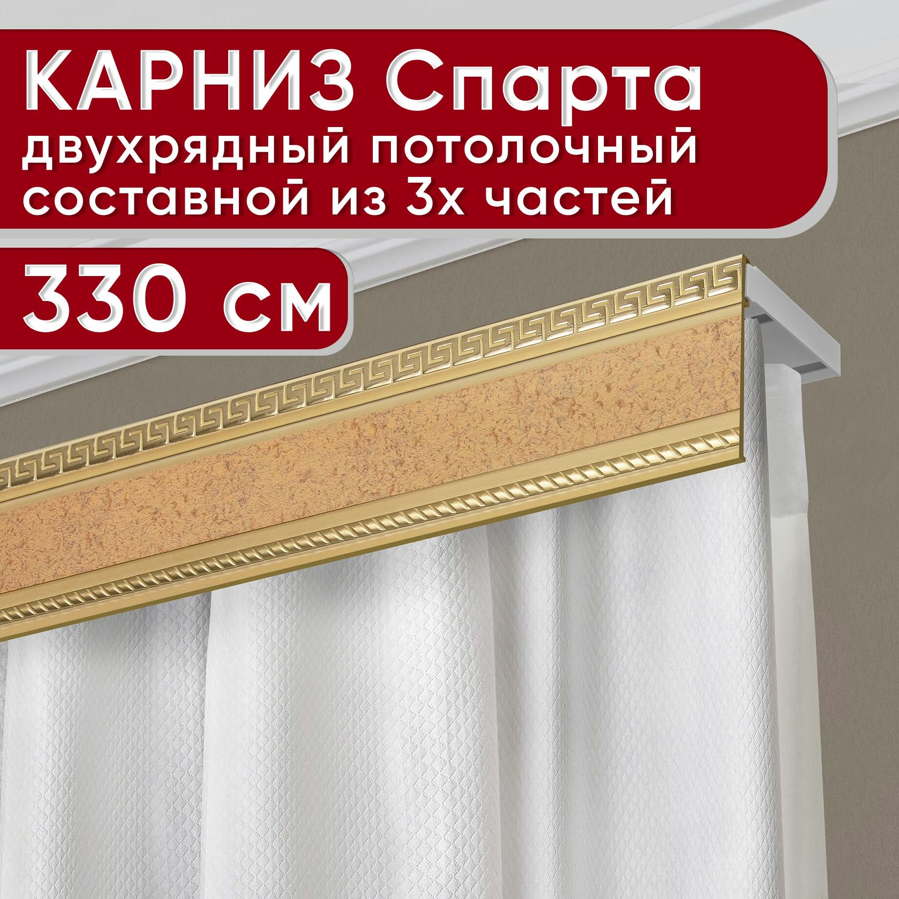 Карниз двухрядный потолочный пластмассовый с декоративной планкой Тесей, белый/золото 330 см