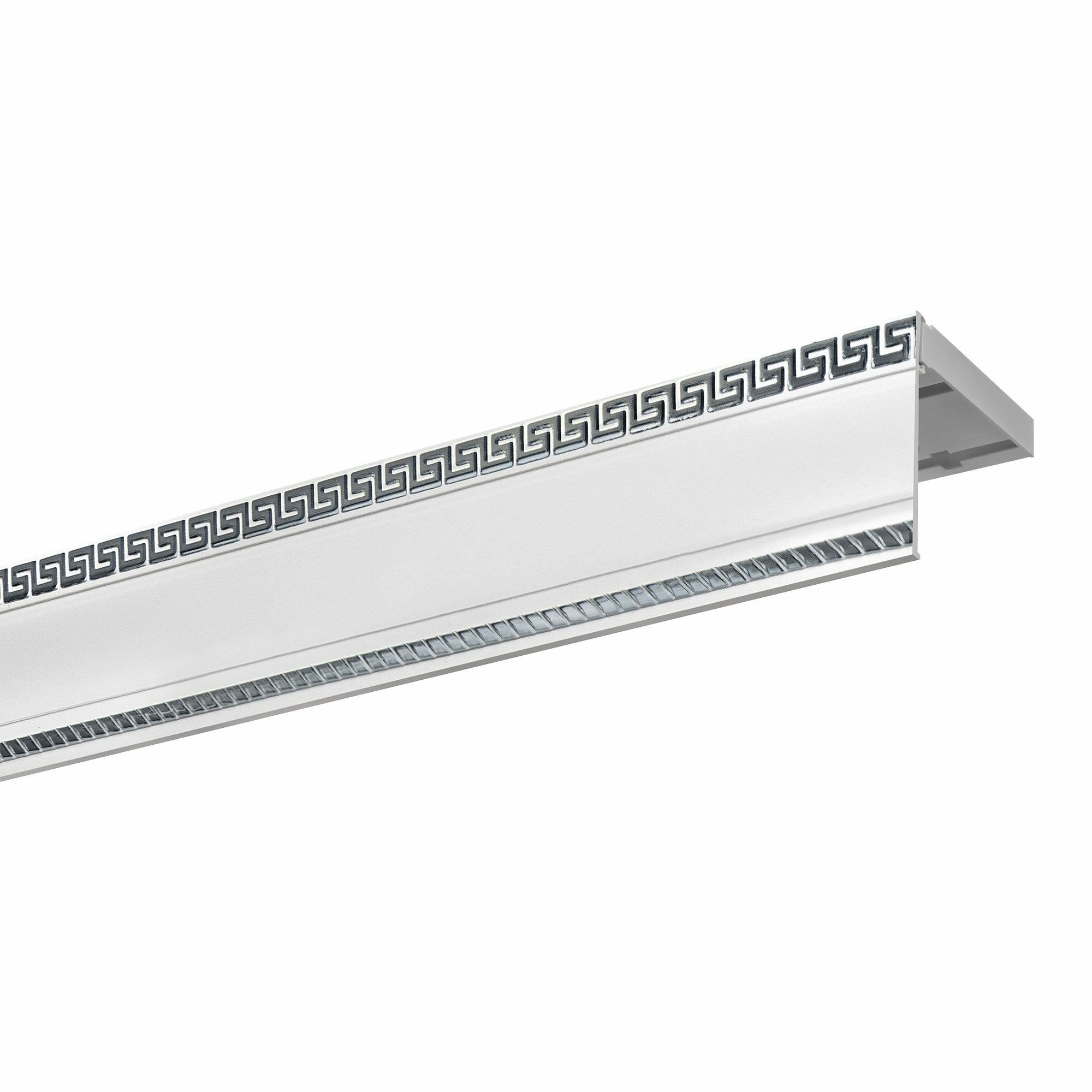 СохранитьКарниз двухрядный потолочный пластмассовый с декоративной планкой Тесей, белый/хром 270 см интересное: