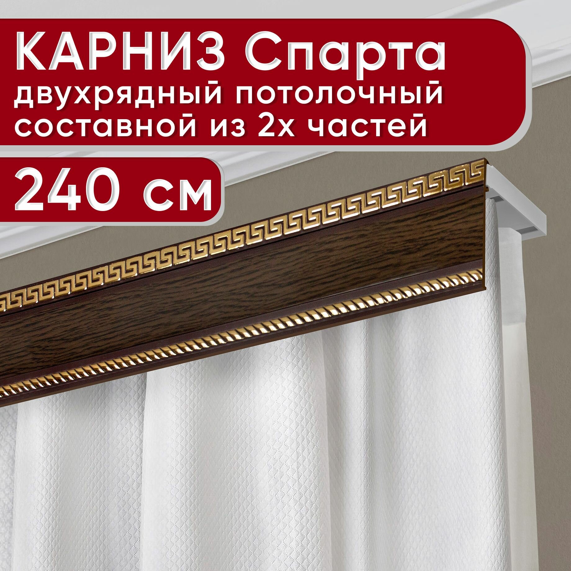 Купить Карниз двухрядный потолочный пластмассовый с декоративной планкой Тесей, венге 240 см
