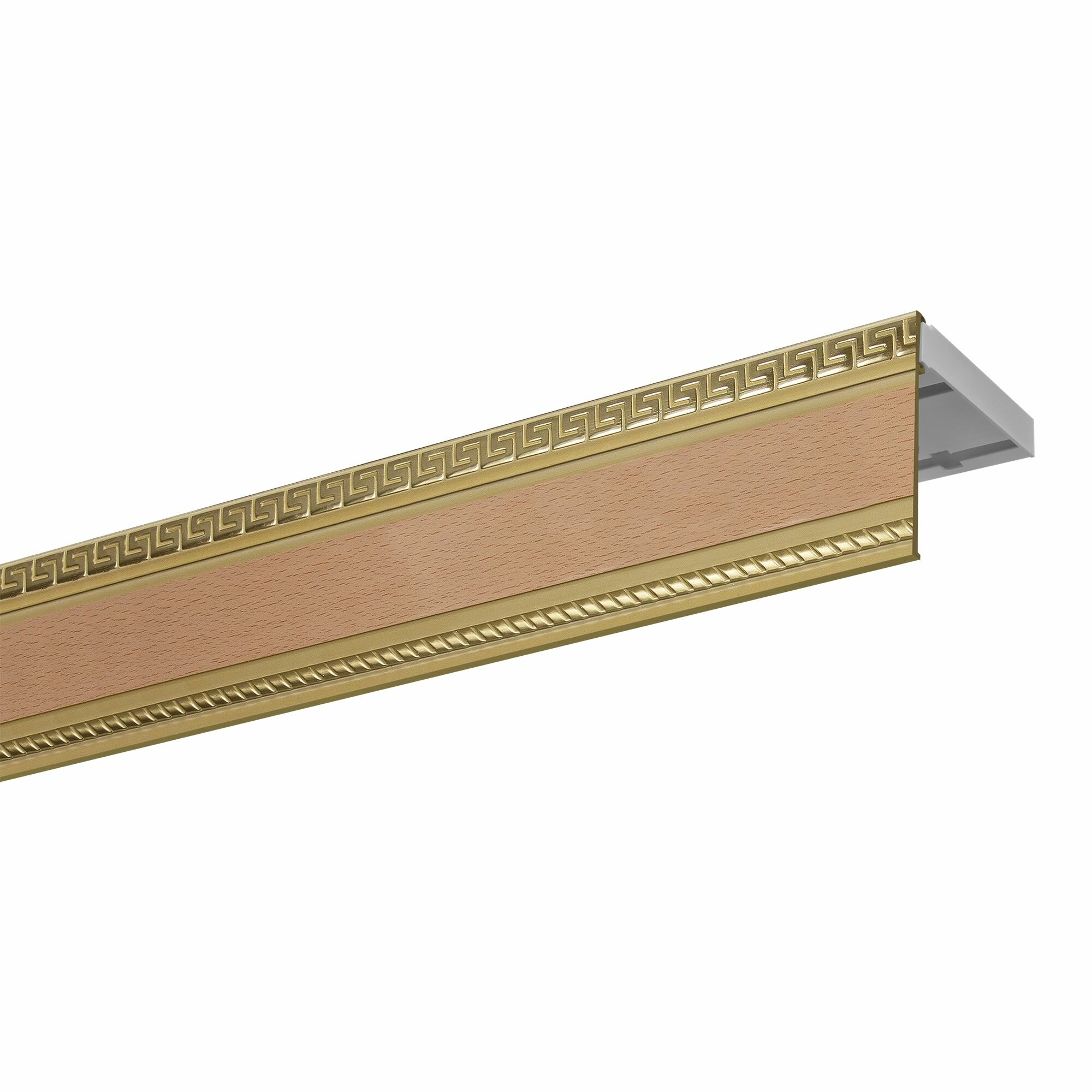 Карниз двухрядный потолочный пластмассовый с декоративной планкой Тесей, бук 300 см