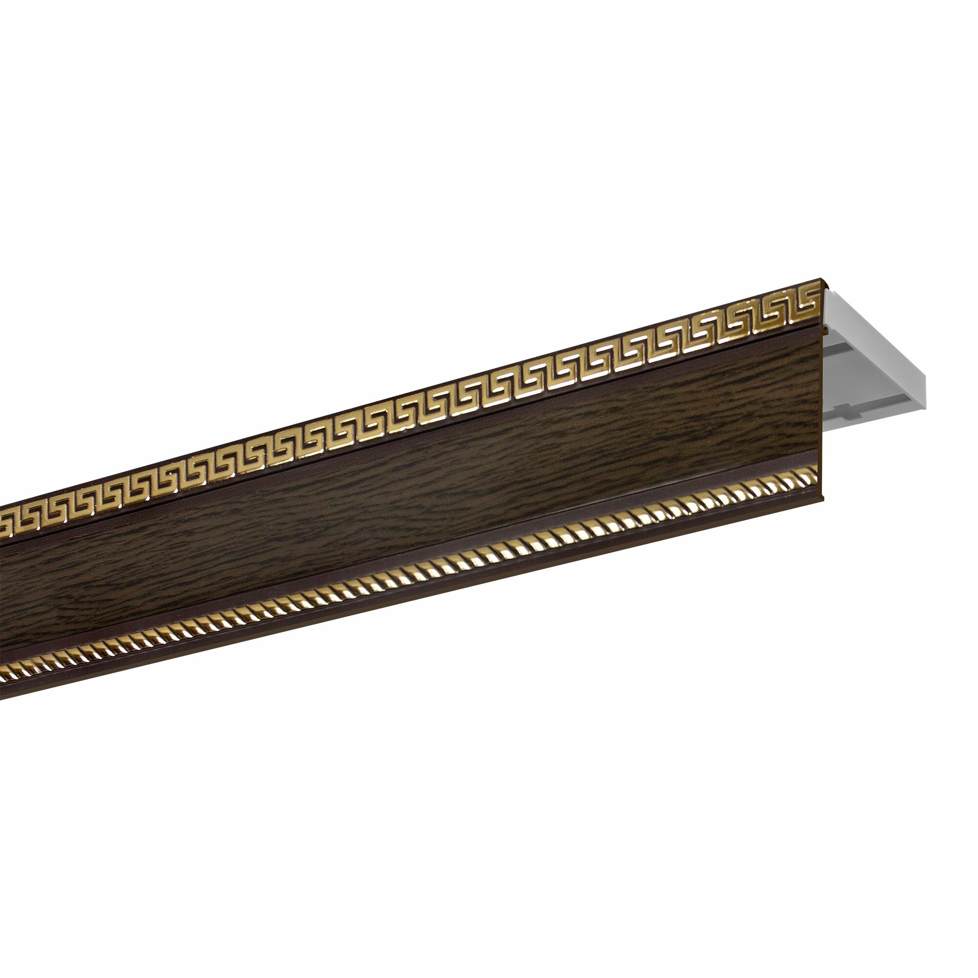 Купить Карниз двухрядный потолочный пластмассовый с декоративной планкой Тесей, венге 360 см
