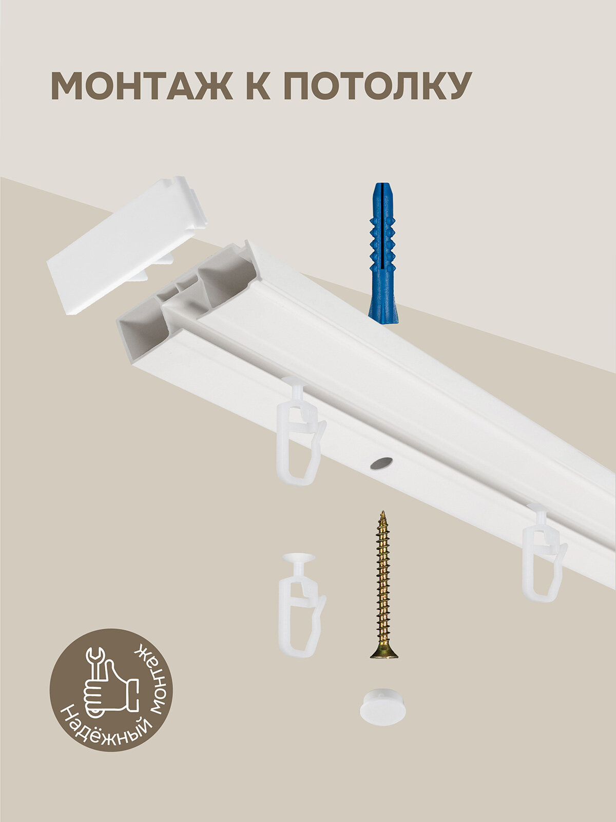 Карниз для штор трехрядный, "Эскар", составной (2 части), пластик, длина 200 см, белый