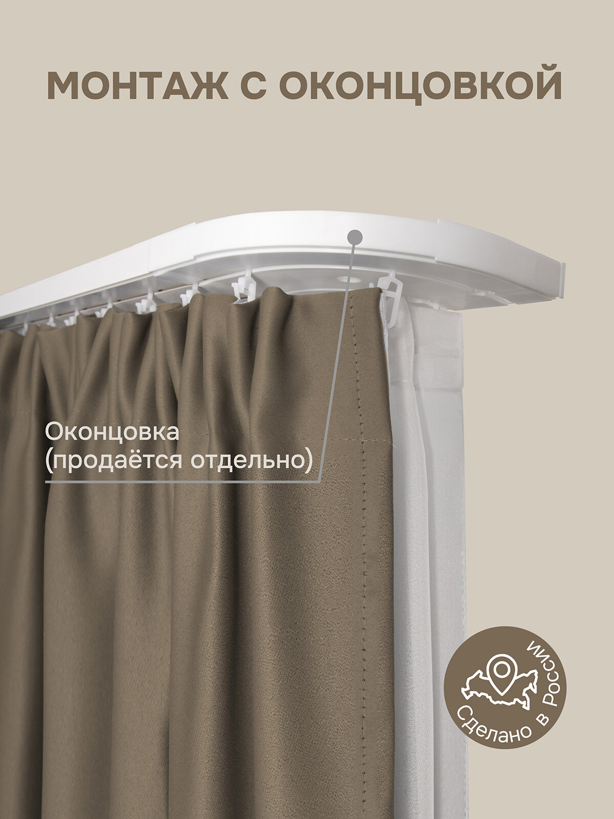 Карниз для штор однорядный, "Эскар", составной (2 части), пластик, длина 180 см, белый