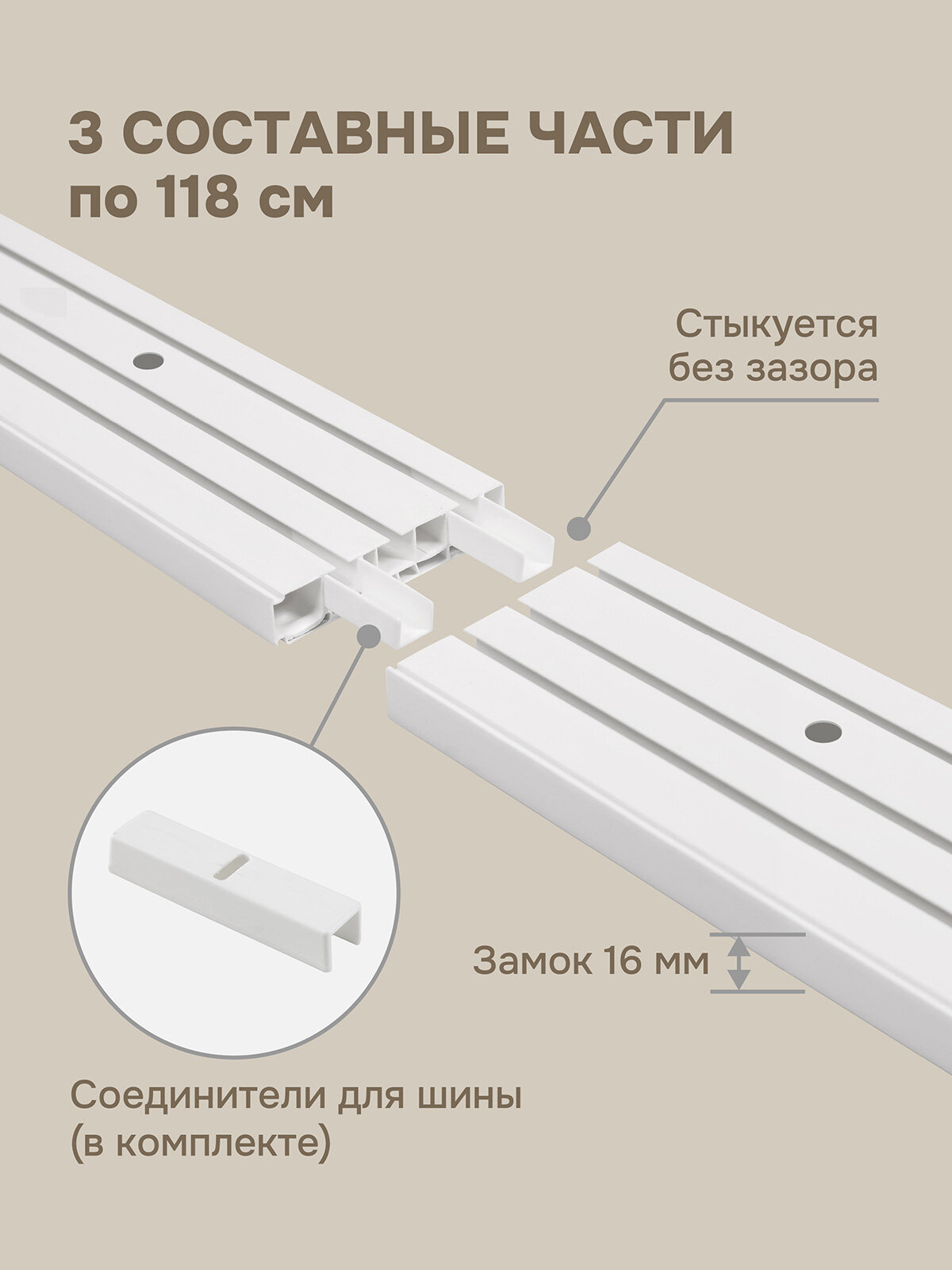 СохранитьКарниз для штор трехрядный, "Эскар", составной (3 части), пластик, длина 354 см, белый интересное: