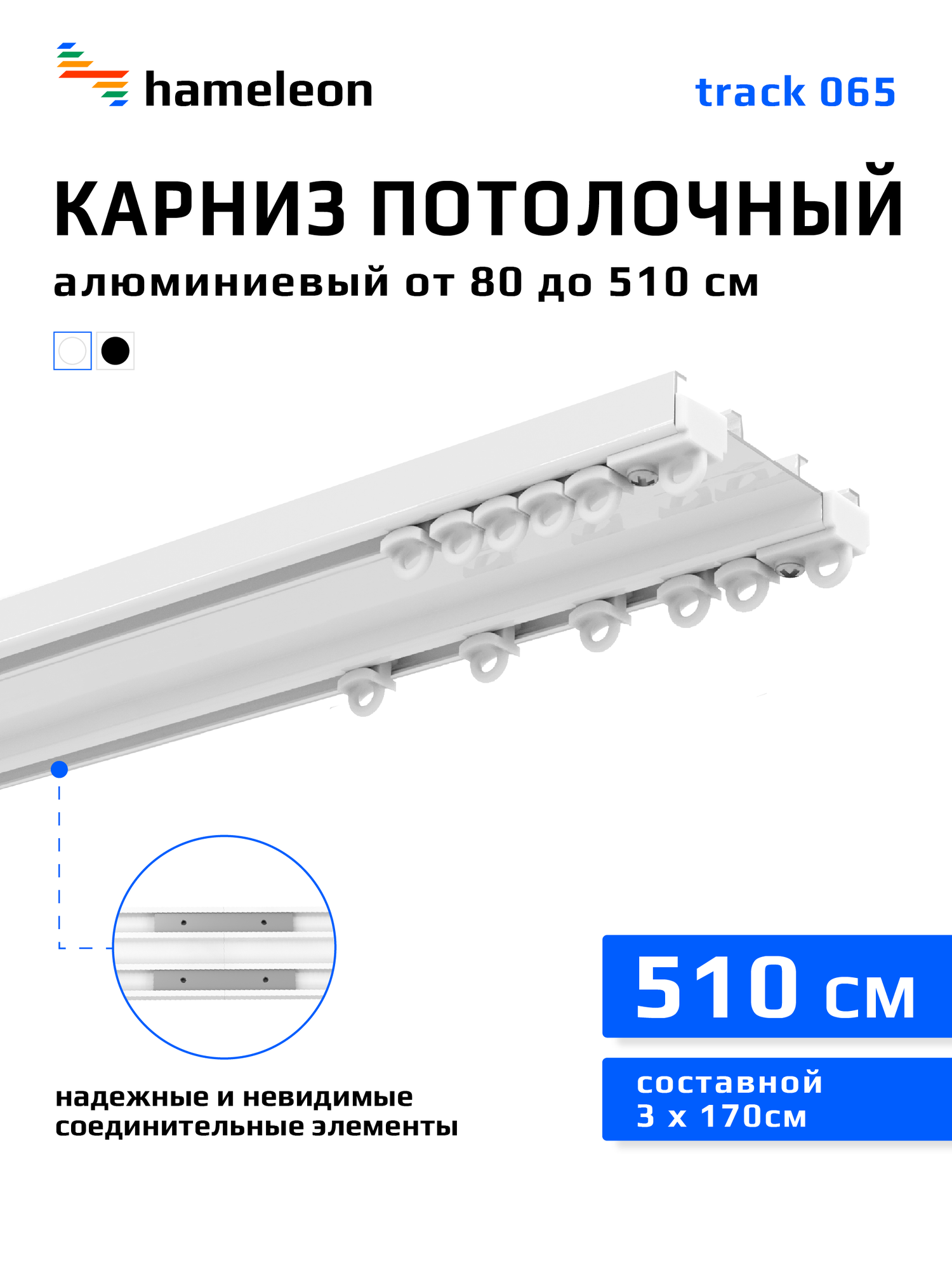 СохранитьКарниз для штор 510 см hameleon track 065 потолочный двухрядный, белый, алюминий интересное: