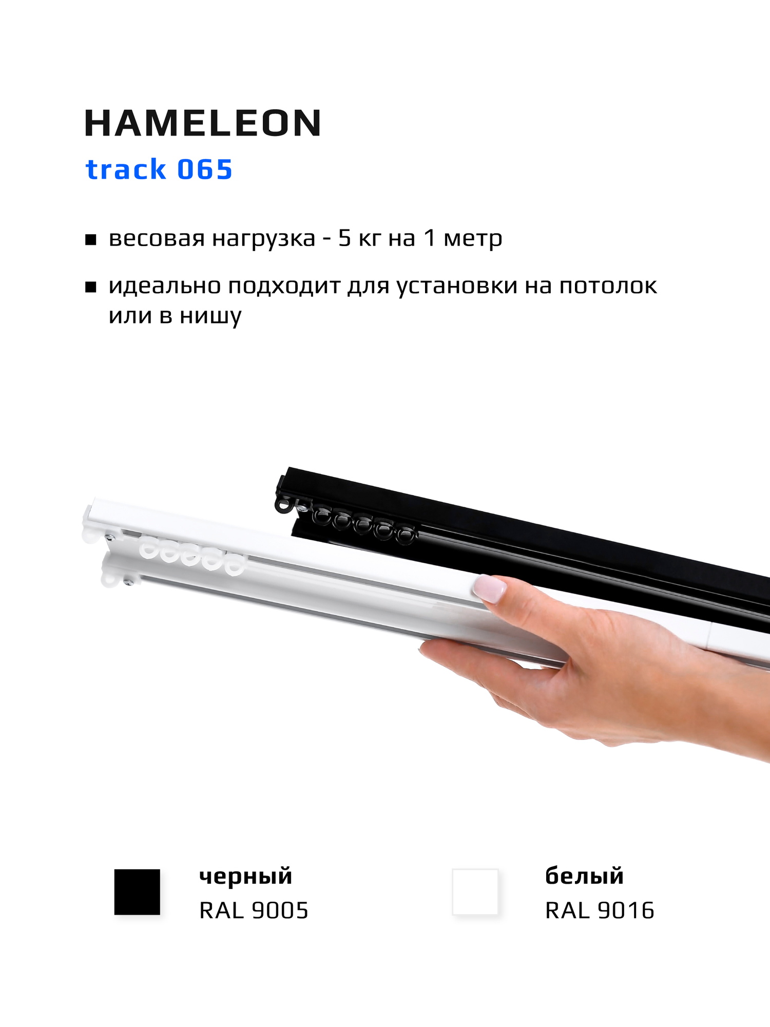 Карниз для штор 100 см hameleon track 065 потолочный двухрядный, белый, алюминий