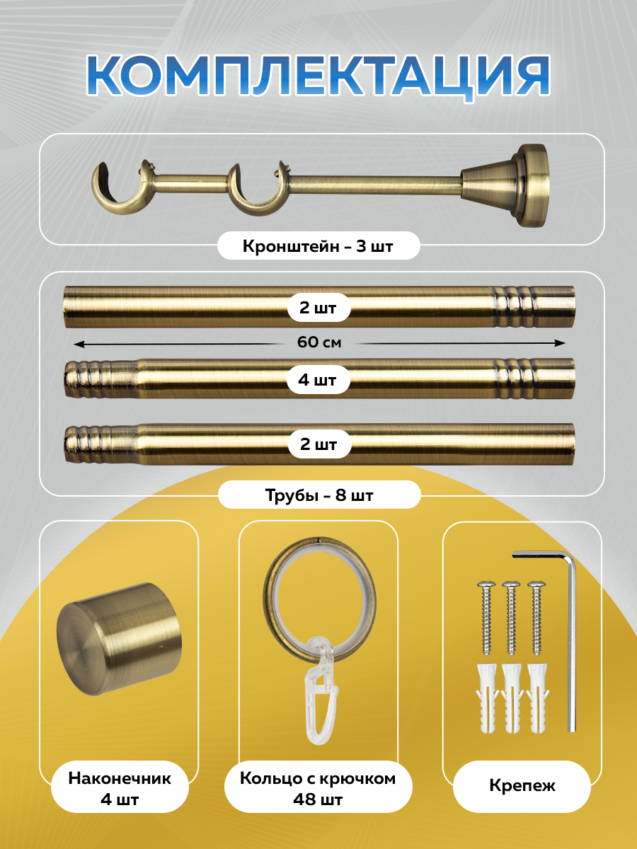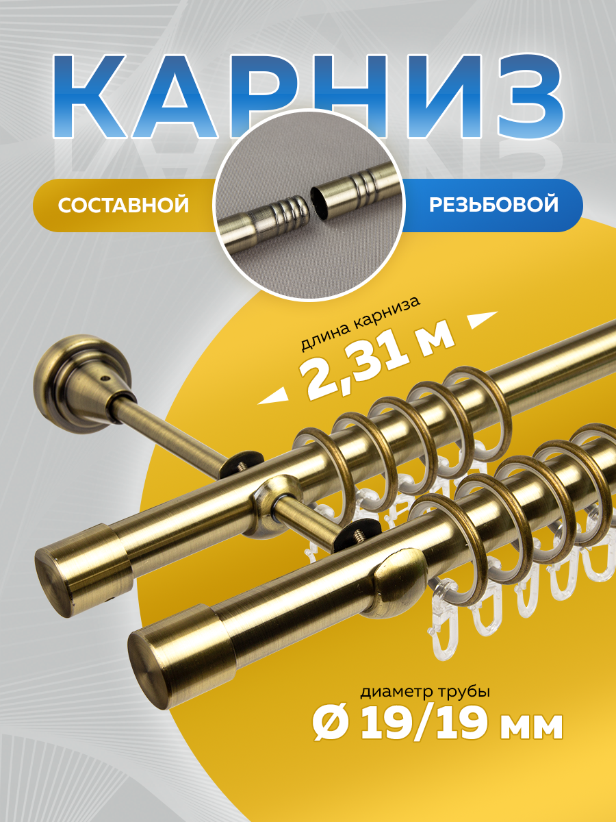 Карниз Mirtex для штор, двухрядный, металл, резьбовое соединение, антик, 231 см интересное: