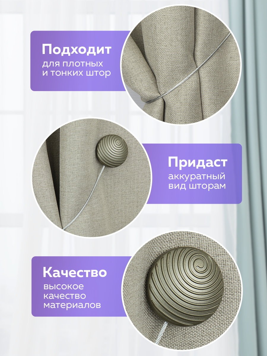 Подхваты для штор с магнитом - 1 шт. серый интересное: