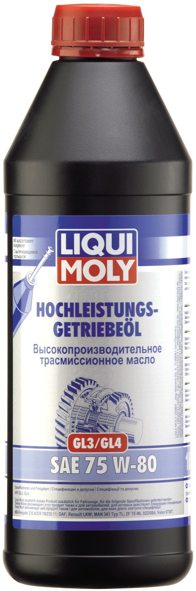 LIQUI MOLY 4427 LiquiMoly 75W80 Hochleistungs-Getriebeoil (1L)_масло трансмис.! синт.\ API GL-3/GL-4,MB 235.4/235.10