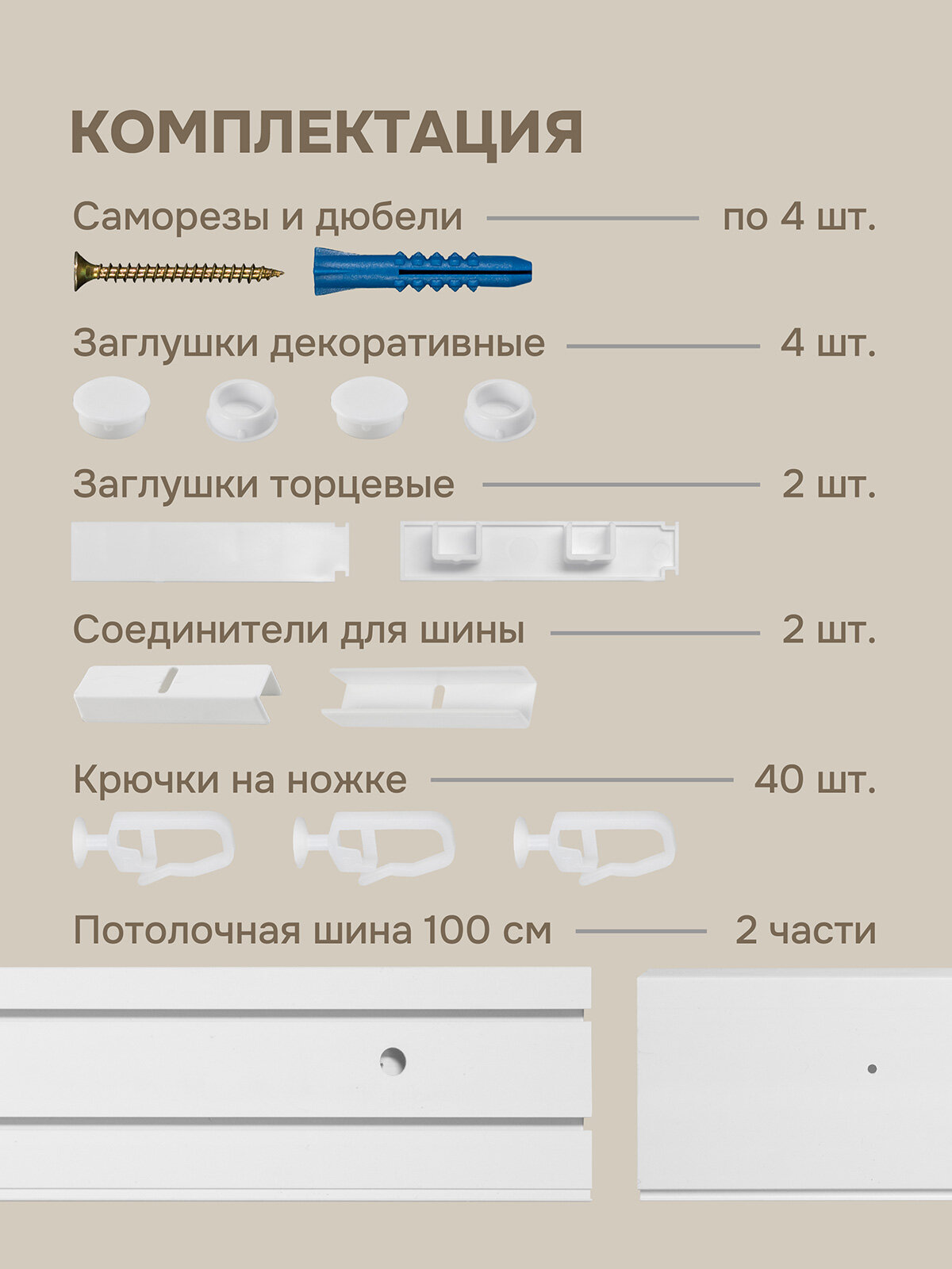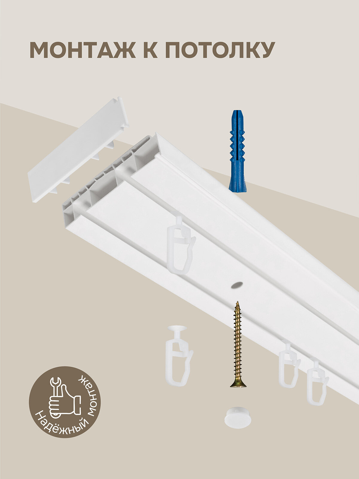 Карниз для штор двухрядный, "Эскар", составной (2 части), пластик, длина 200 см, белый интересное: