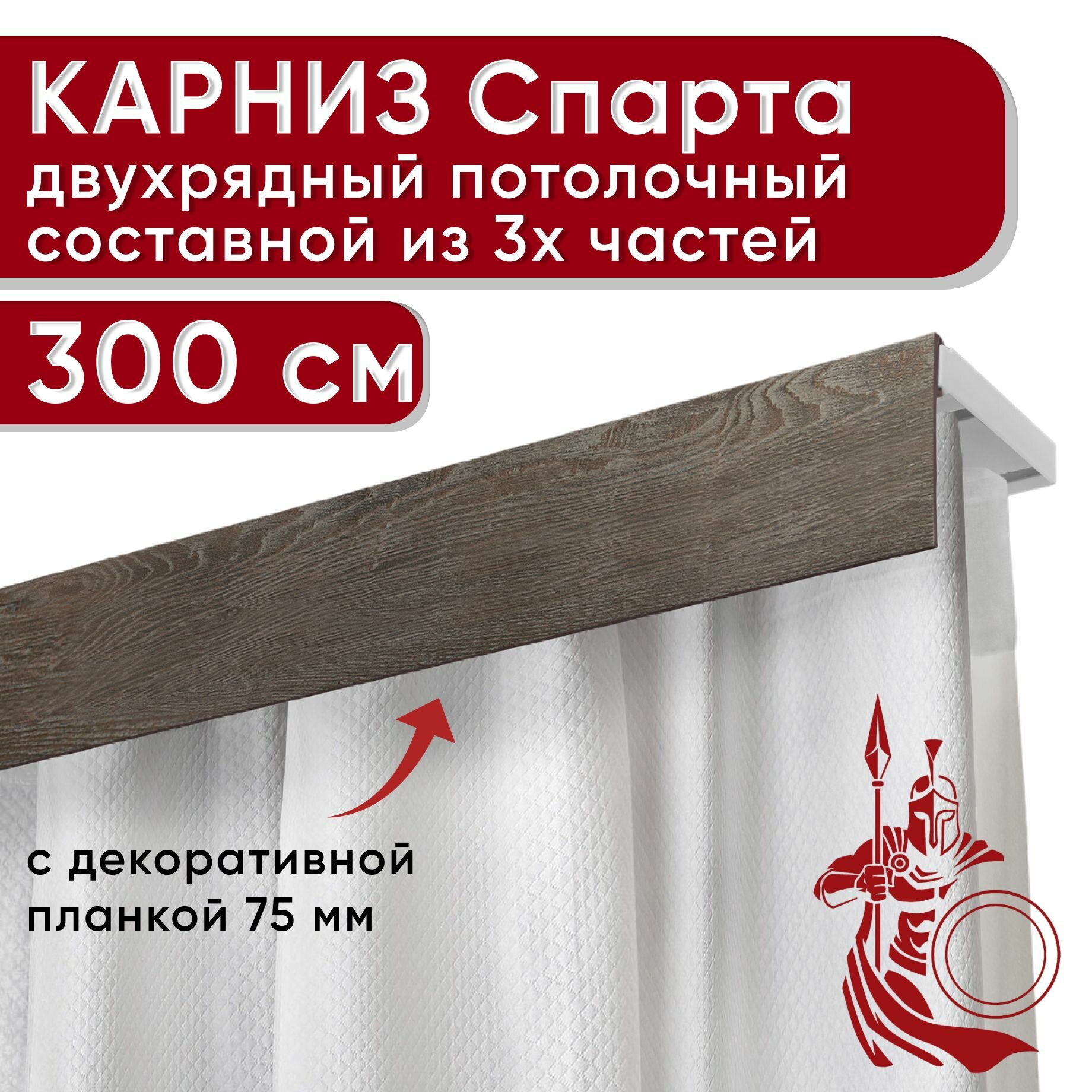 Ниже Вы можете прочитать отзывы на Карниз двухрядный потолочный пластмассовый с декоративной планкой Спарта 75, мореный дуб 300 см, ознакомится с подробными характеристиками, посмотреть интересные обзоры и фотографии на Карниз двухрядный потолочный пластмассовый с декоративной планкой Спарта 75, мореный дуб 300 см.