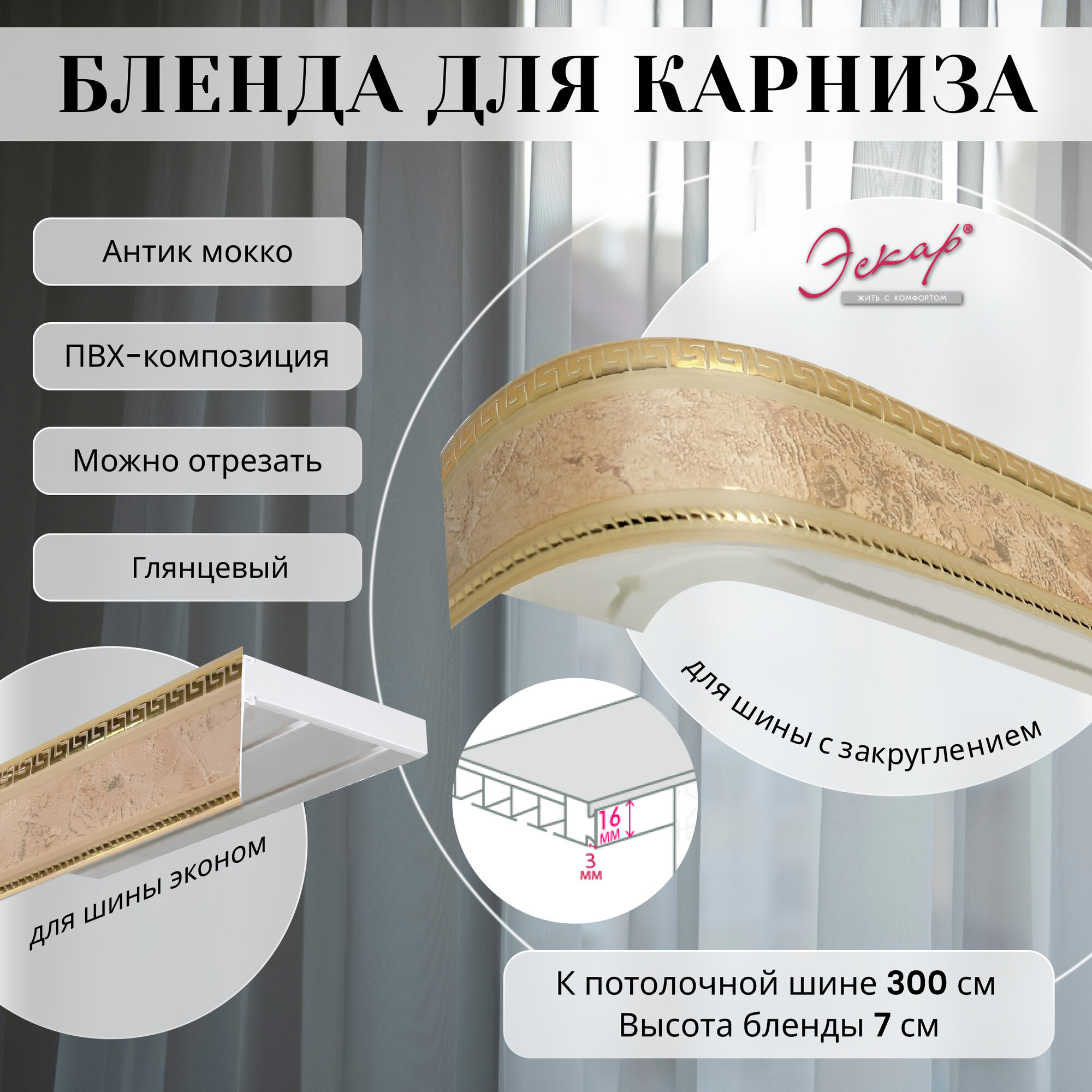 Купить Бленда для карниза 300 см, Антик мокко, ширина 7 см, размер замка 16 мм, пластиковая для потолочной шины