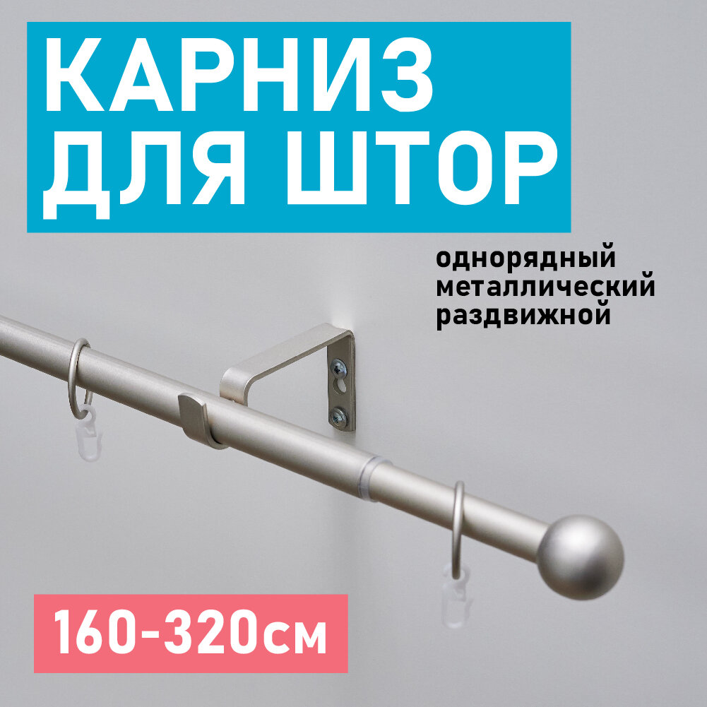 Карниз для штор Трансформер 19/16 мм однорядный шар 160/320см Сталь Матовая Скин интересное: