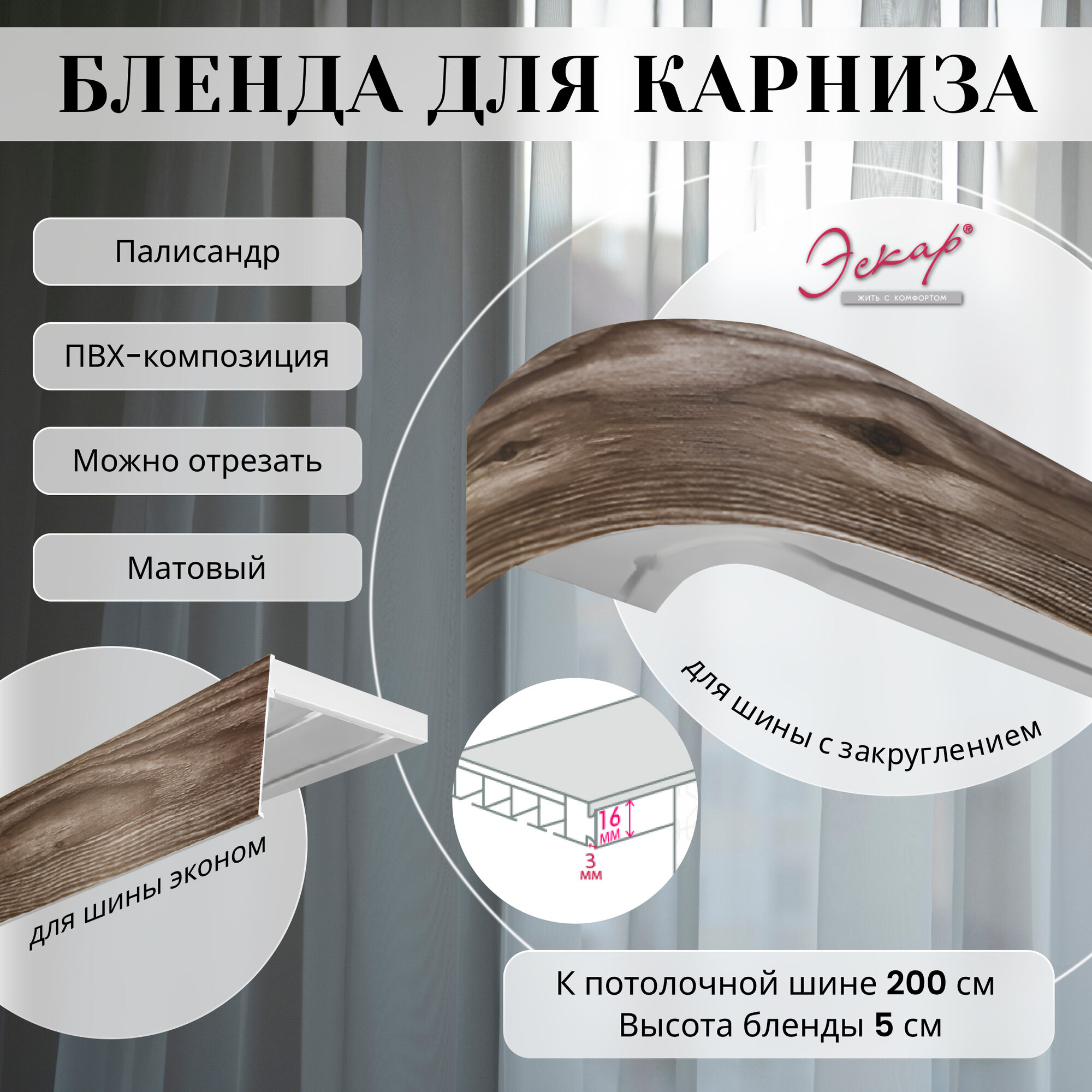 Купить Бленда для карниза 200 см, цвет Палисандр, ширина 5 см, размер замка 16 мм, пластиковая для потолочной шины