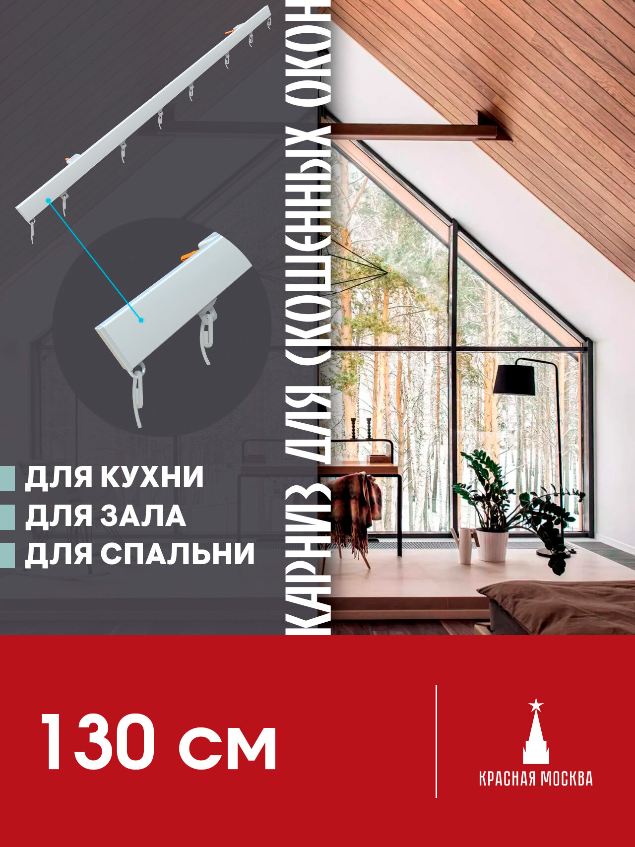 СохранитьКарниз для штор на скошенные окна, Белый 1 ряд. Для мансардных или диагональных окон, 130 см интересное: