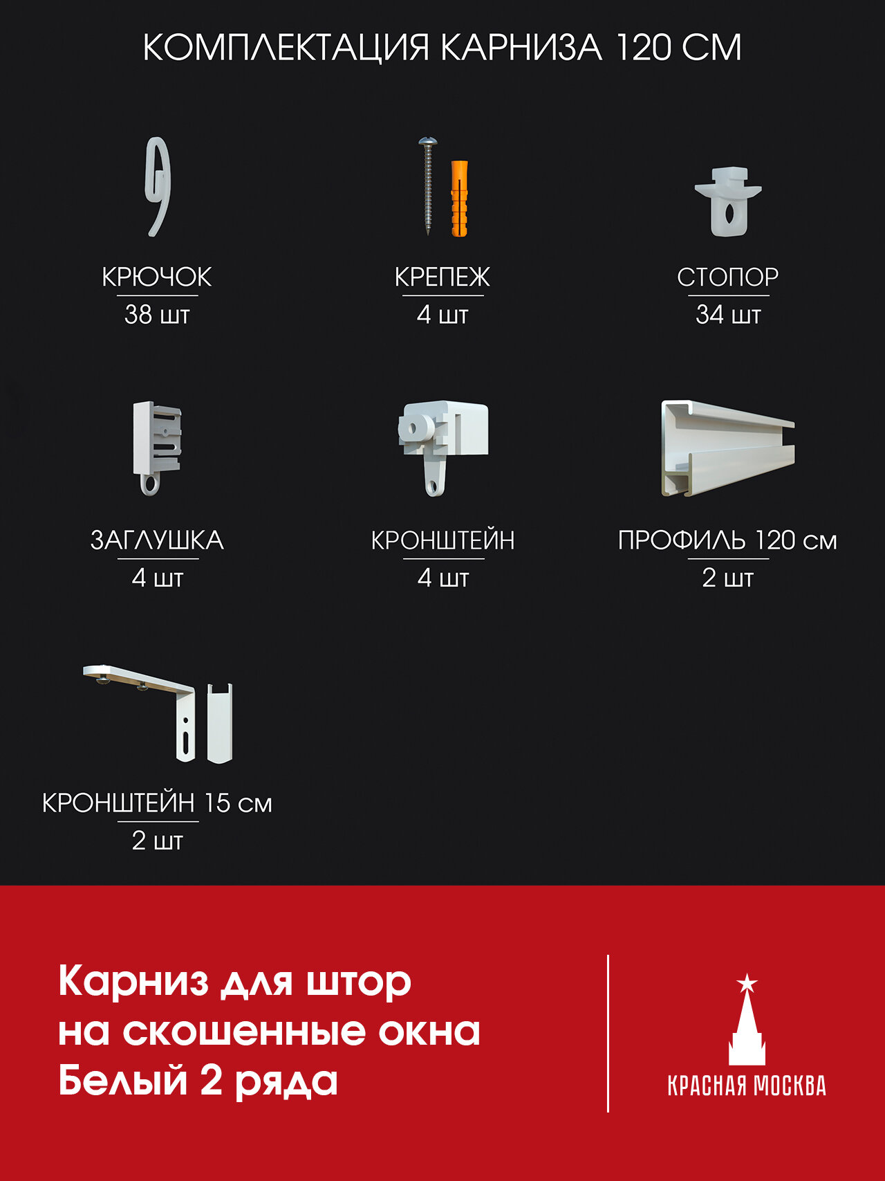 СохранитьКарниз для штор на скошенные окна, Белый 2 ряда. Для мансардных или диагональных окон, 120 см интересное: