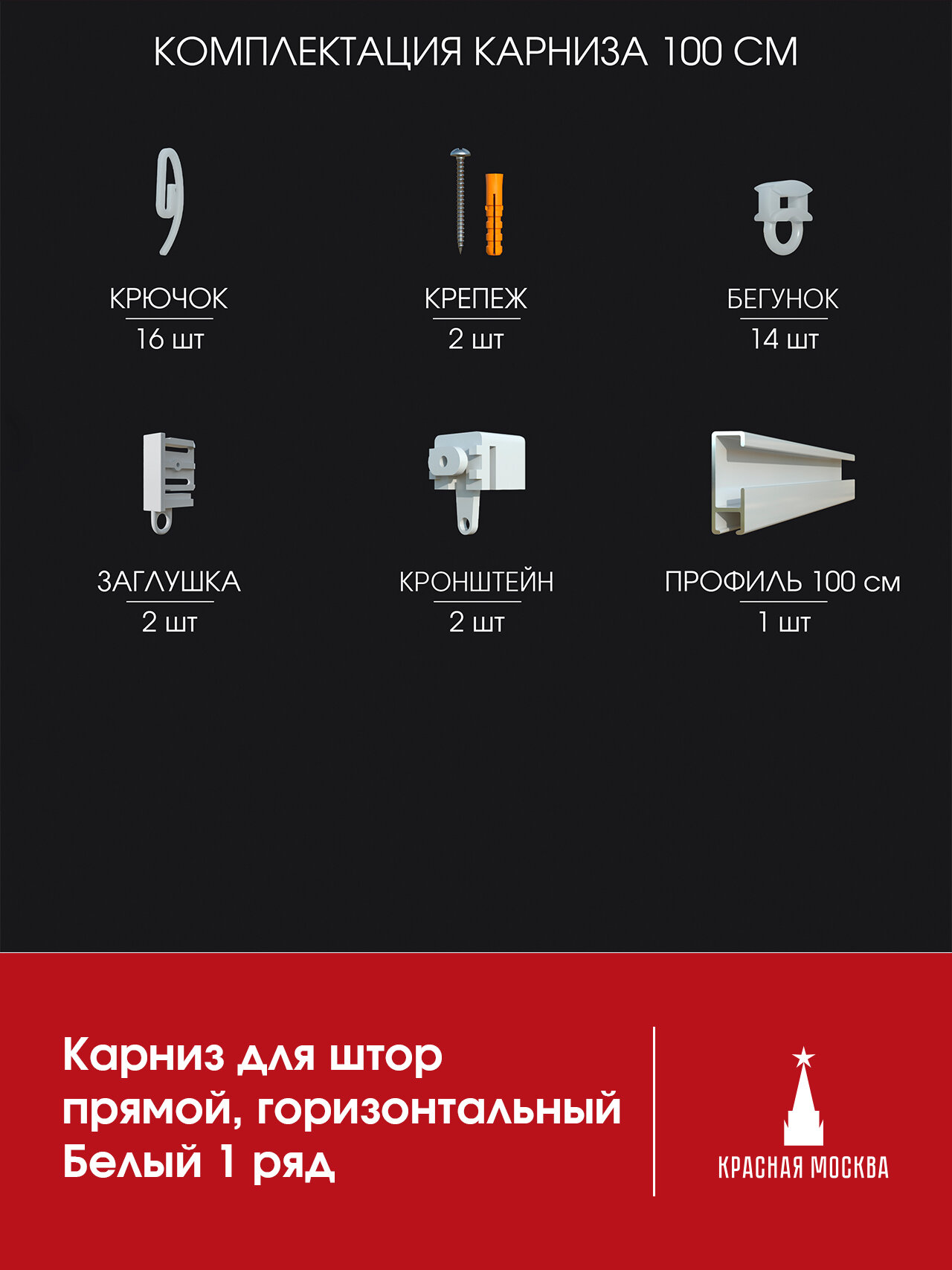Прямой (Горизонтальный, штора сдвижная. Не подходит для наклонного положения) карниз для штор с бегунками, Белый 1 ряд. Для мансардных или диагональных окон, 110 см