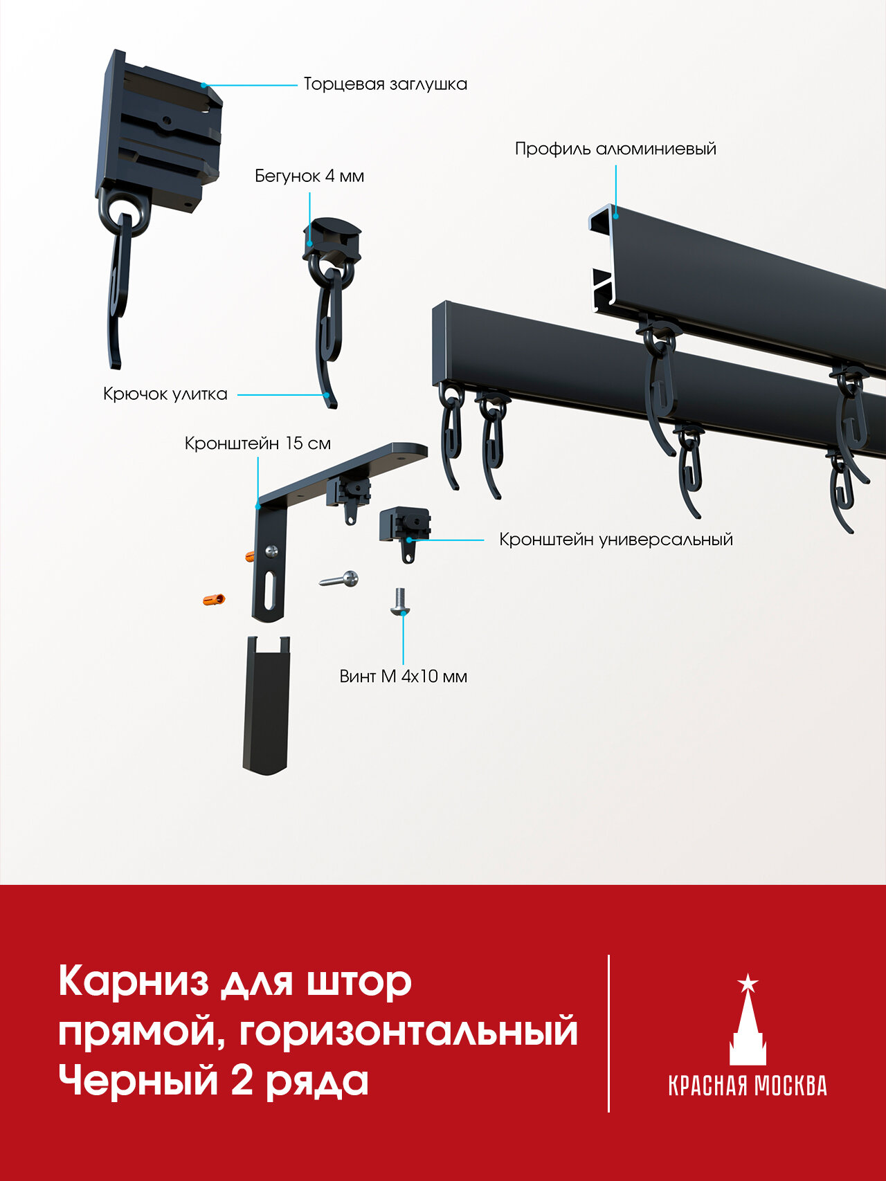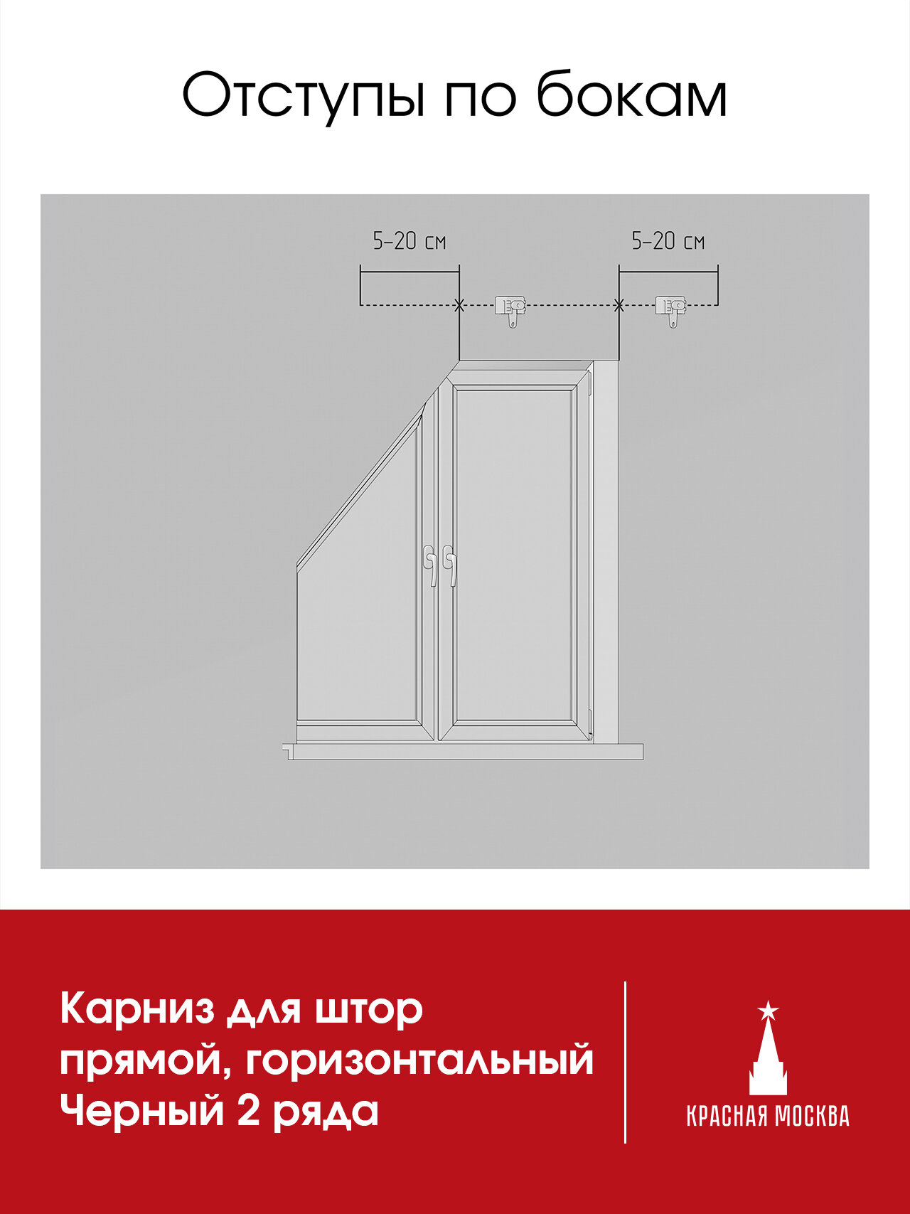 Прямой (Горизонтальный, штора сдвижная. Не подходит для наклонного положения) карниз для штор на скошенные окна, Черный 2 ряда. Для мансардных или диагональных окон, 300 см