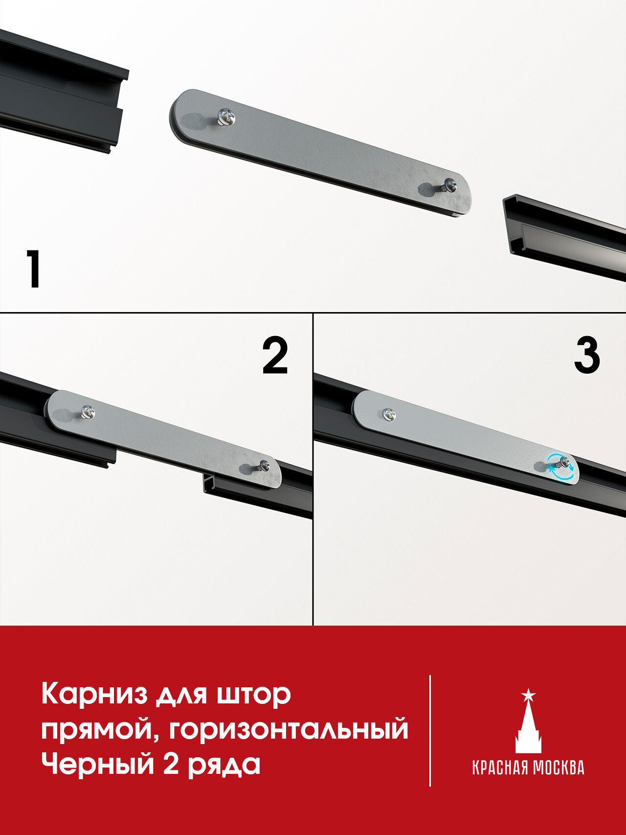 Прямой (Горизонтальный, штора сдвижная. Не подходит для наклонного положения) карниз для штор на скошенные окна, Черный 2 ряда. Для мансардных или диагональных окон, 300 см