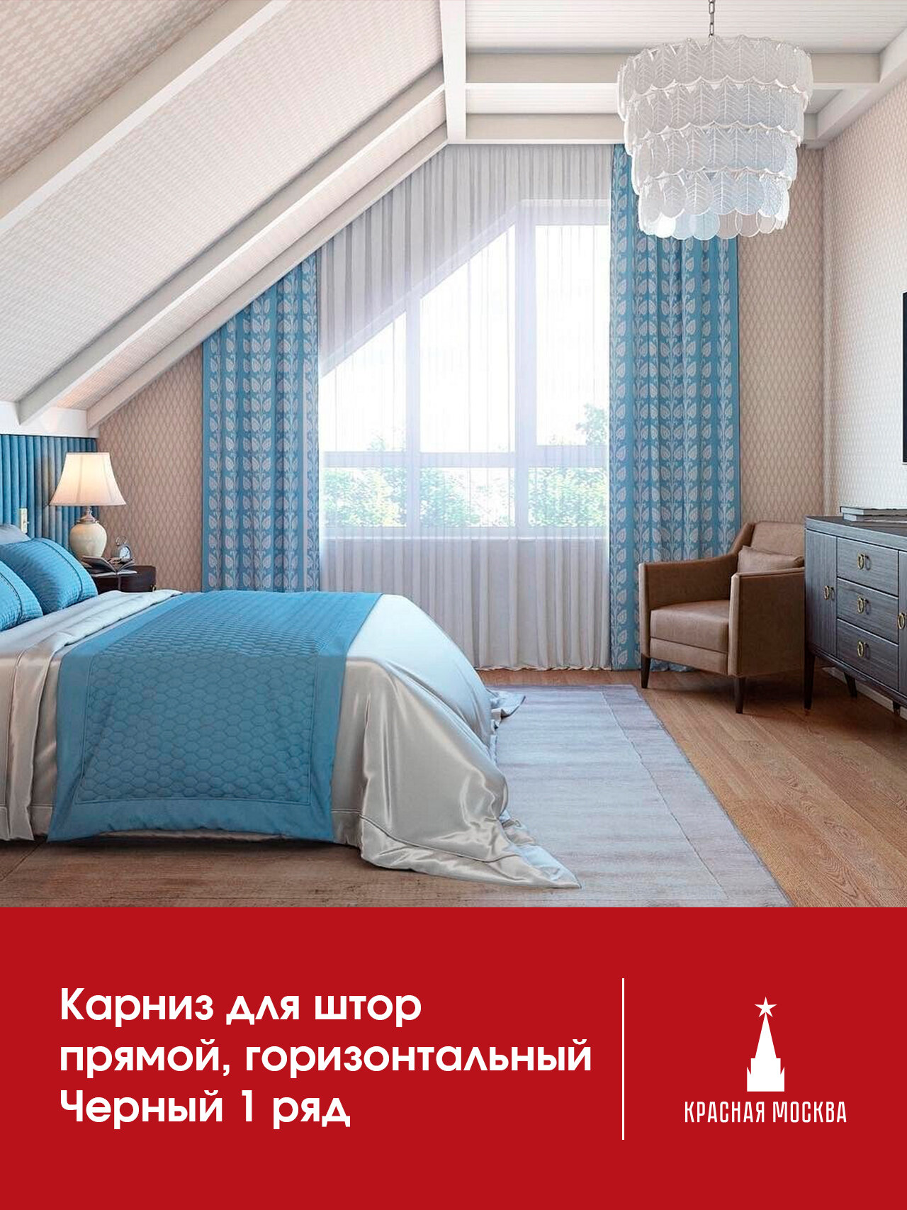 Прямой (Горизонтальный, штора сдвижная. Не подходит для наклонного положения) карниз для штор с бегунками, Черный 1 ряд. Для мансардных или диагональных окон, 110 см