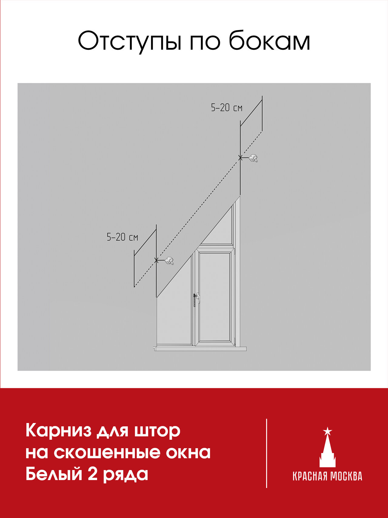 Карниз для штор на скошенные окна, Белый 2 ряда. Для мансардных или диагональных окон, 100 см