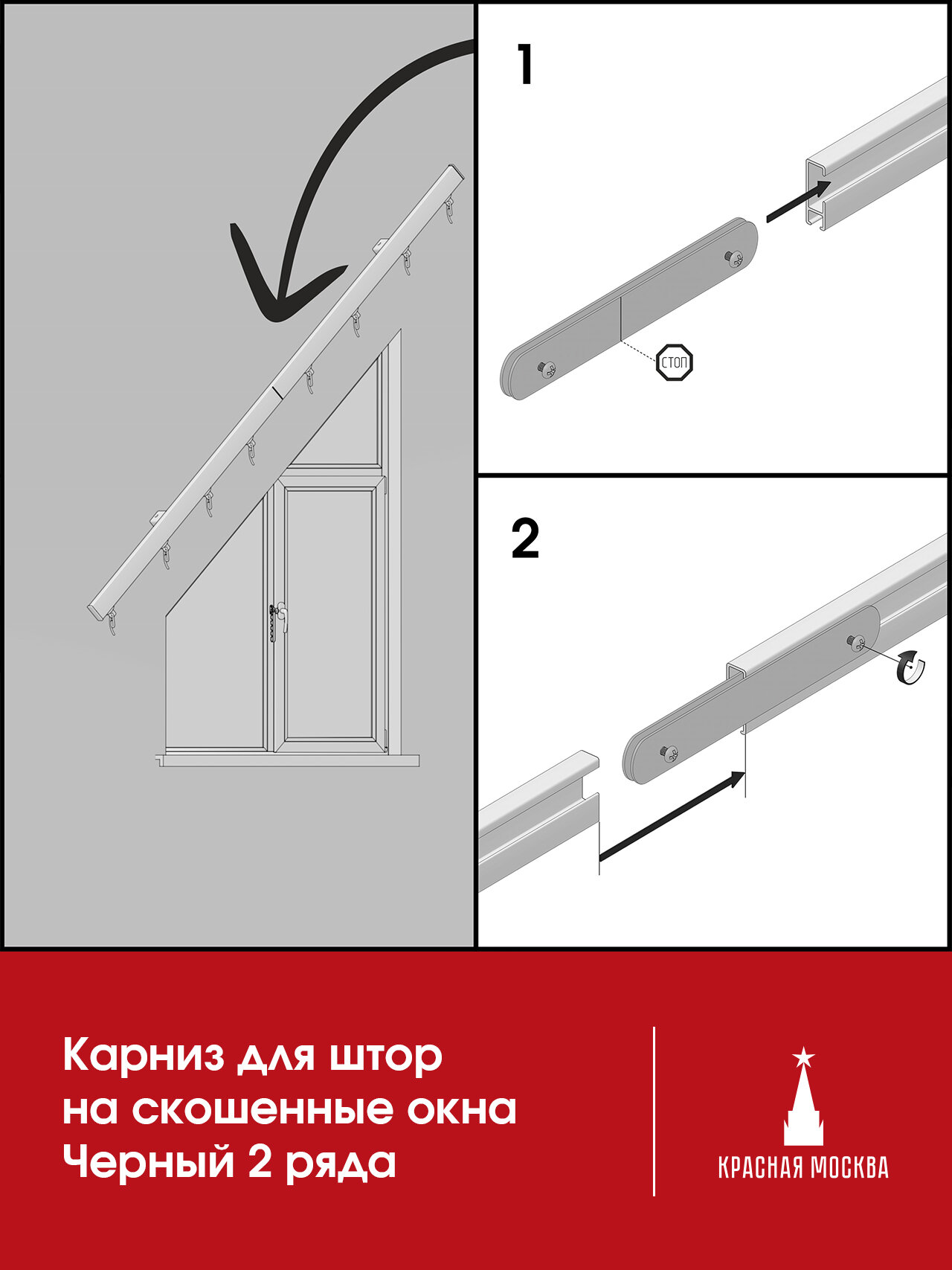 СохранитьКарниз для штор на скошенные окна, Черный 2 ряда. Для мансардных или диагональных окон, 180 см интересное: