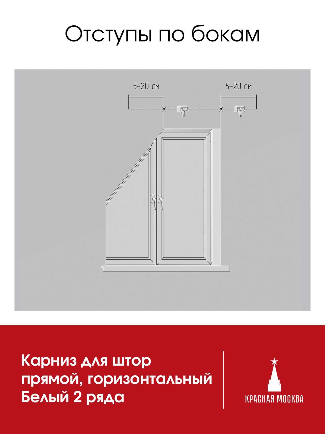Прямой (Горизонтальный, штора сдвижная. Не подходит для наклонного положения) карниз для штор на скошенные окна, Белый 2 ряда. Для мансардных или диагональных окон, 110 см