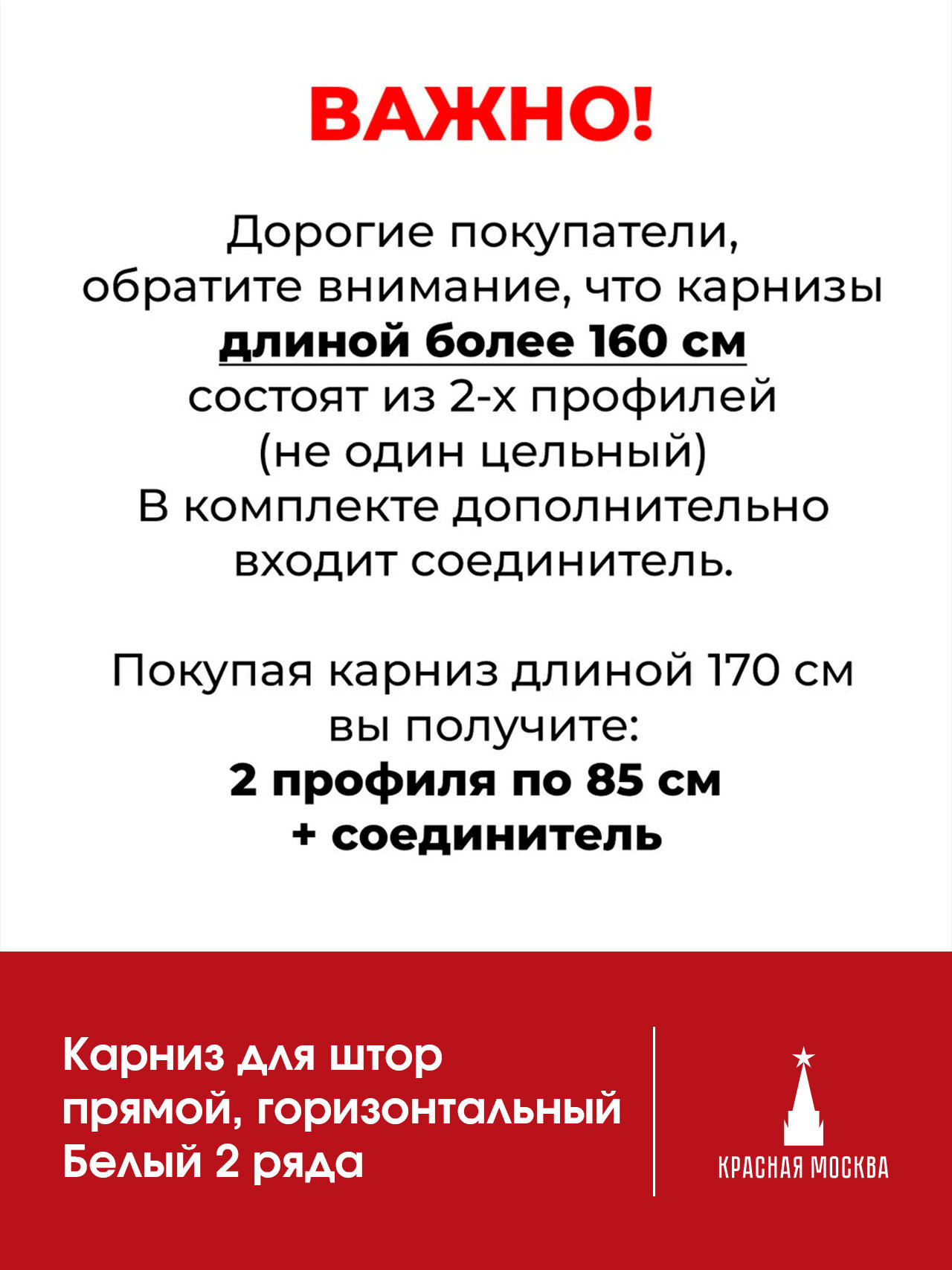 Прямой (Горизонтальный, штора сдвижная. Не подходит для наклонного положения) карниз для штор на скошенные окна, Белый 2 ряда. Для мансардных или диагональных окон, 170 см