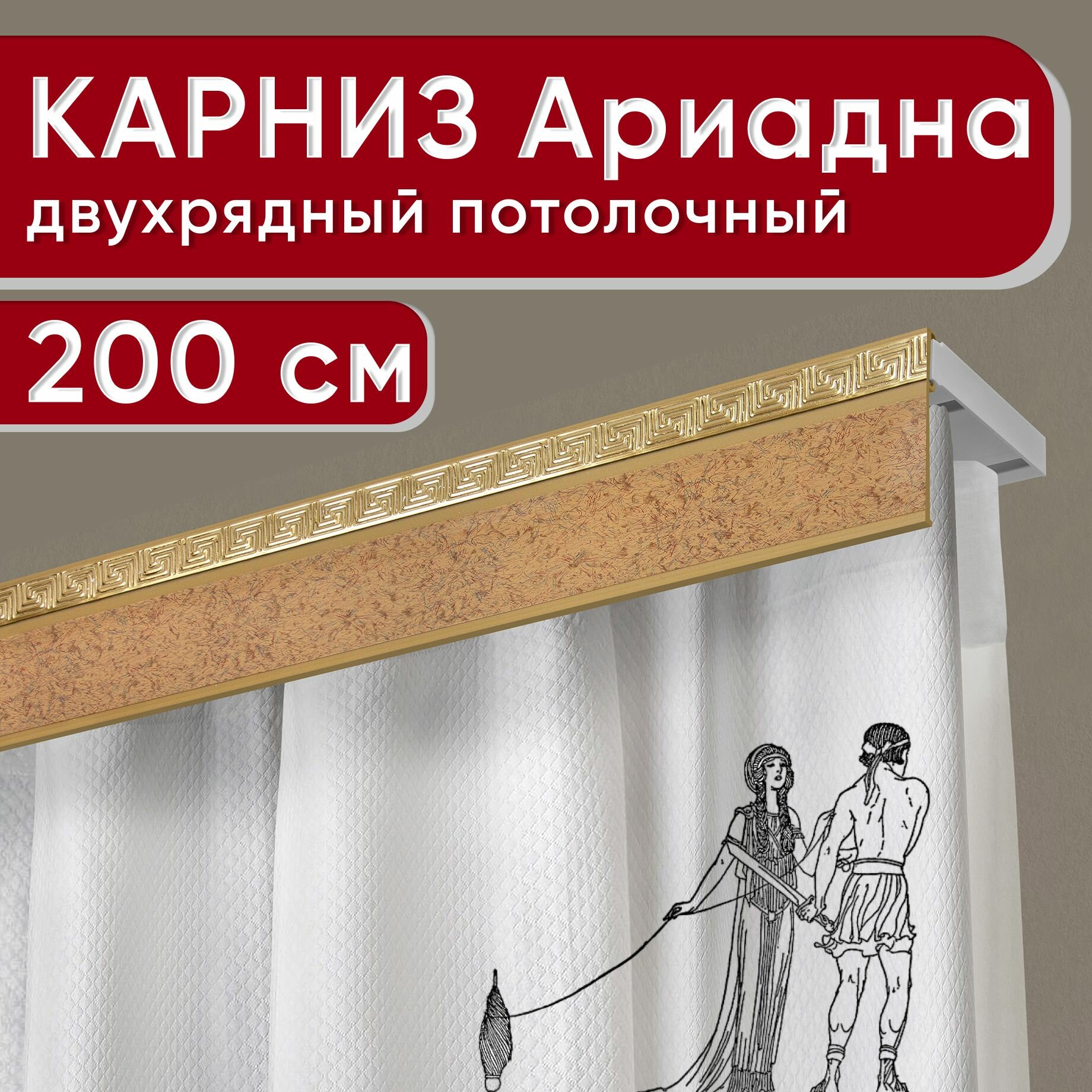 Карниз двухрядный потолочный с декоративной планкой, пластмассовый Ариадна, бук 200 см