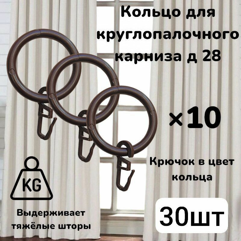 Кольца для карниза с крючками на карниз 28 мм Орех интересное: