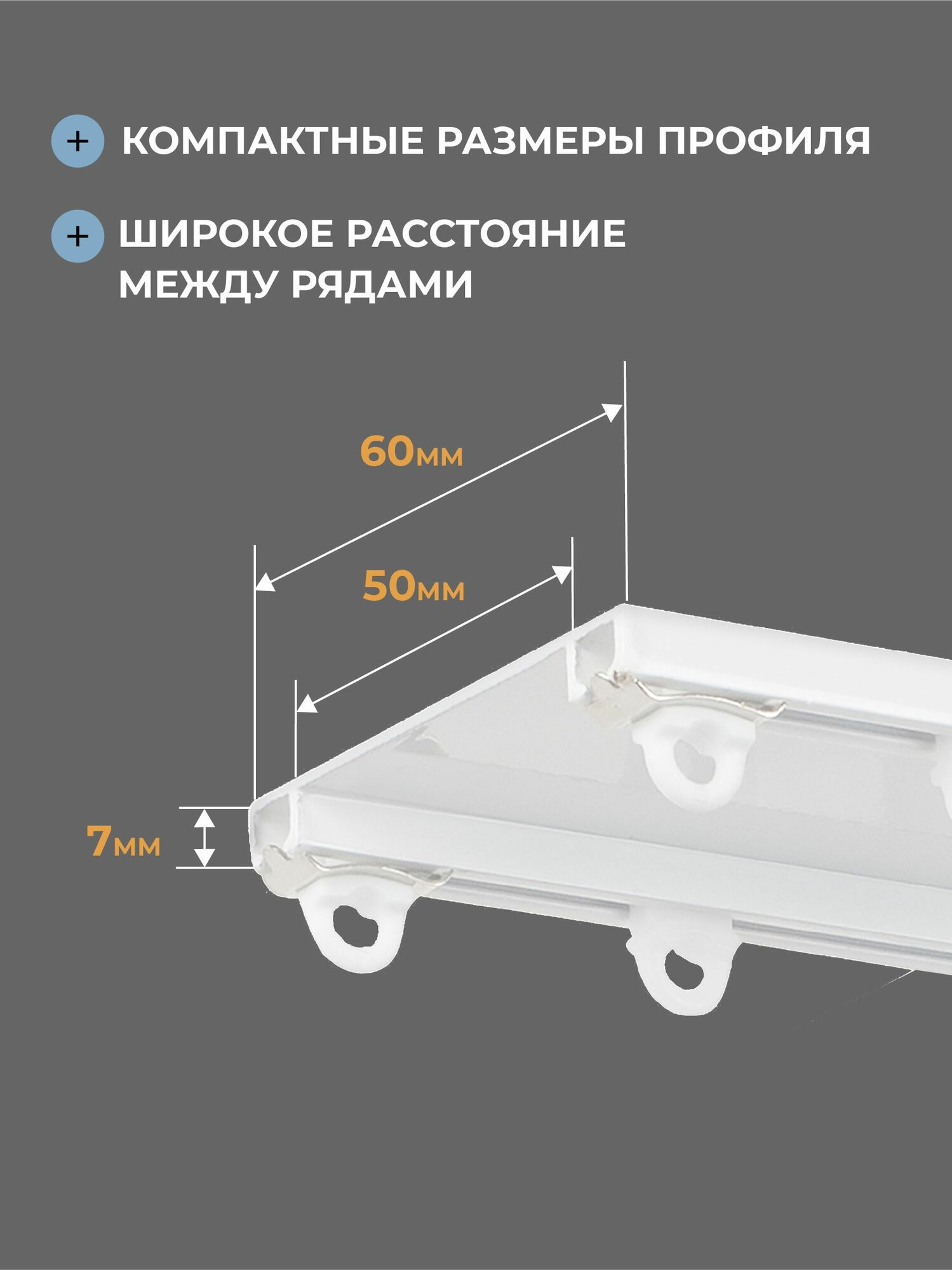 Карниз для штор потолочный двухрядный профильный алюминиевый шина Facile twin 280 см белый