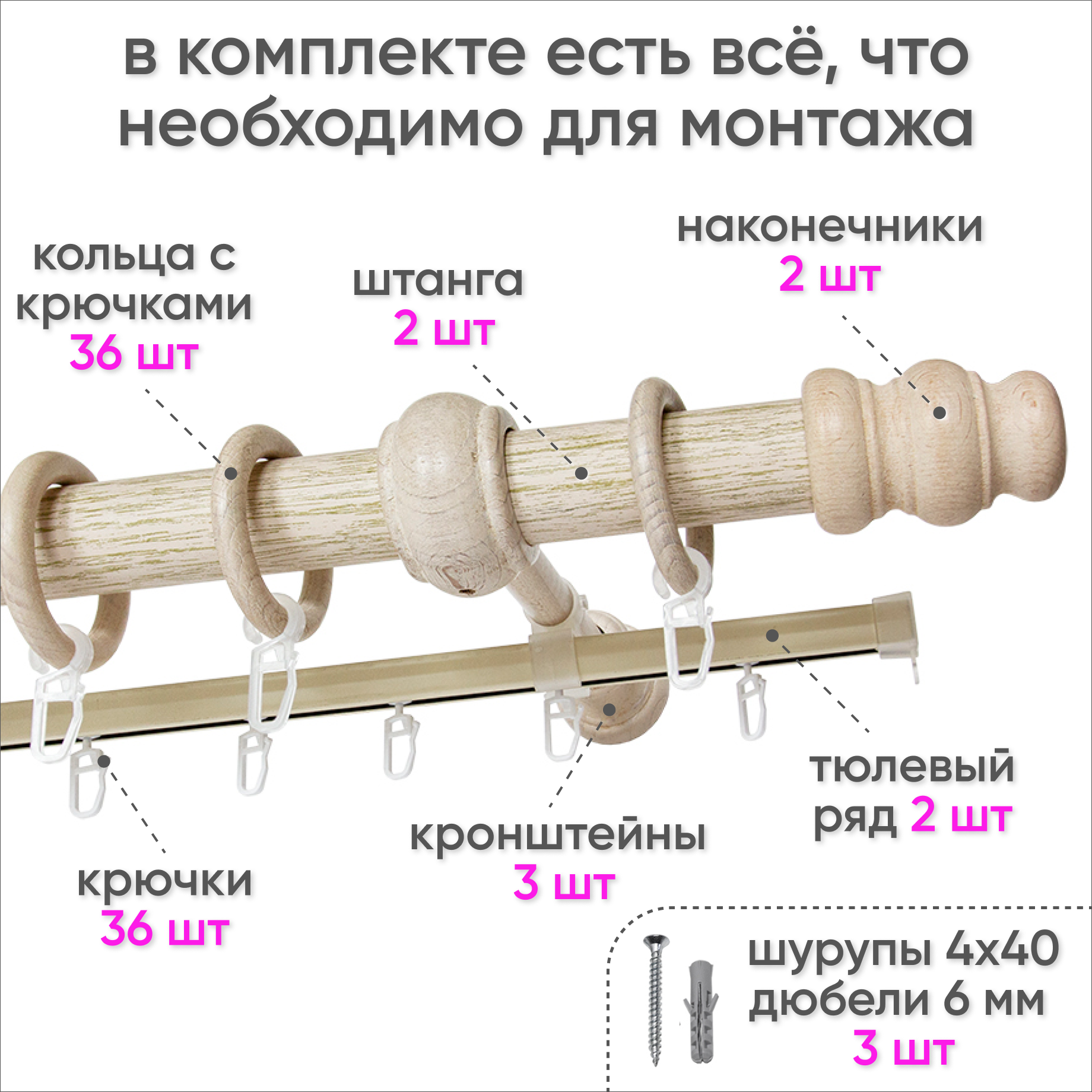 Карниз для штор и гардин деревянный двухрядный Беленый дуб 400 см