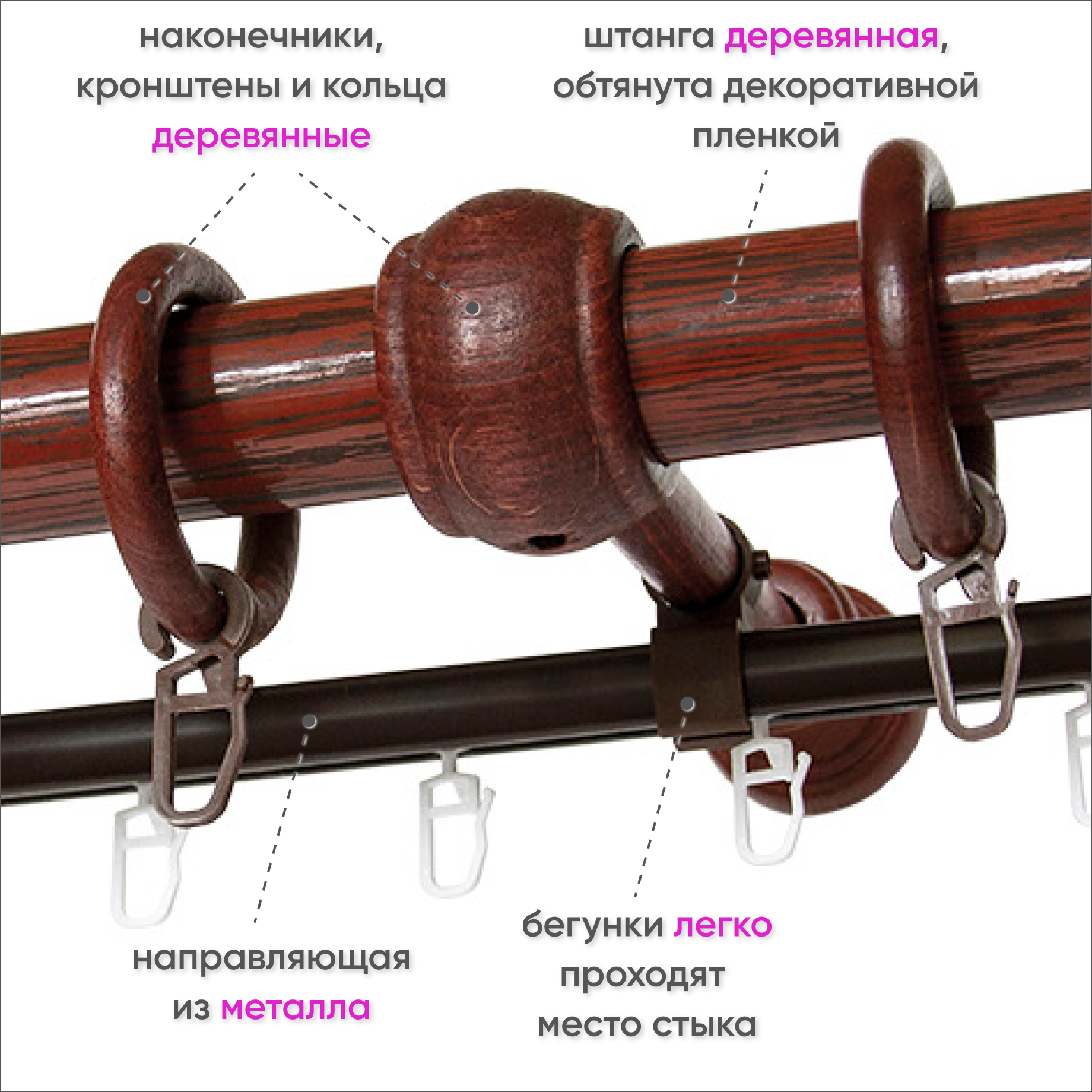 СохранитьКарниз для штор и гардин деревянный двухрядный цвет Темная вишня 250 см интересное: