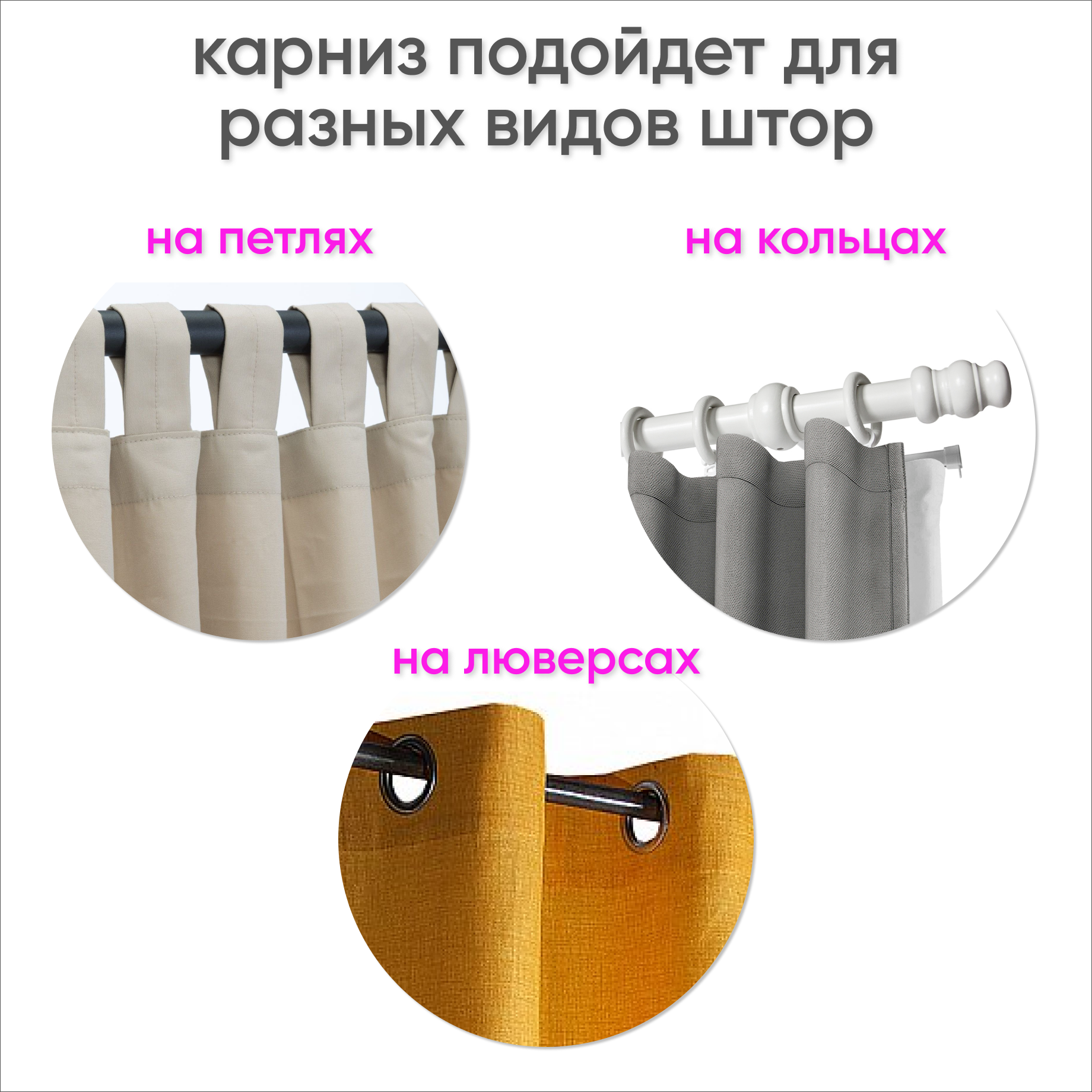 Карниз для штор и тюля Уют, Круглый, Настенный, Двухрядный, Пластиковый, цвет: Черный, 225 см