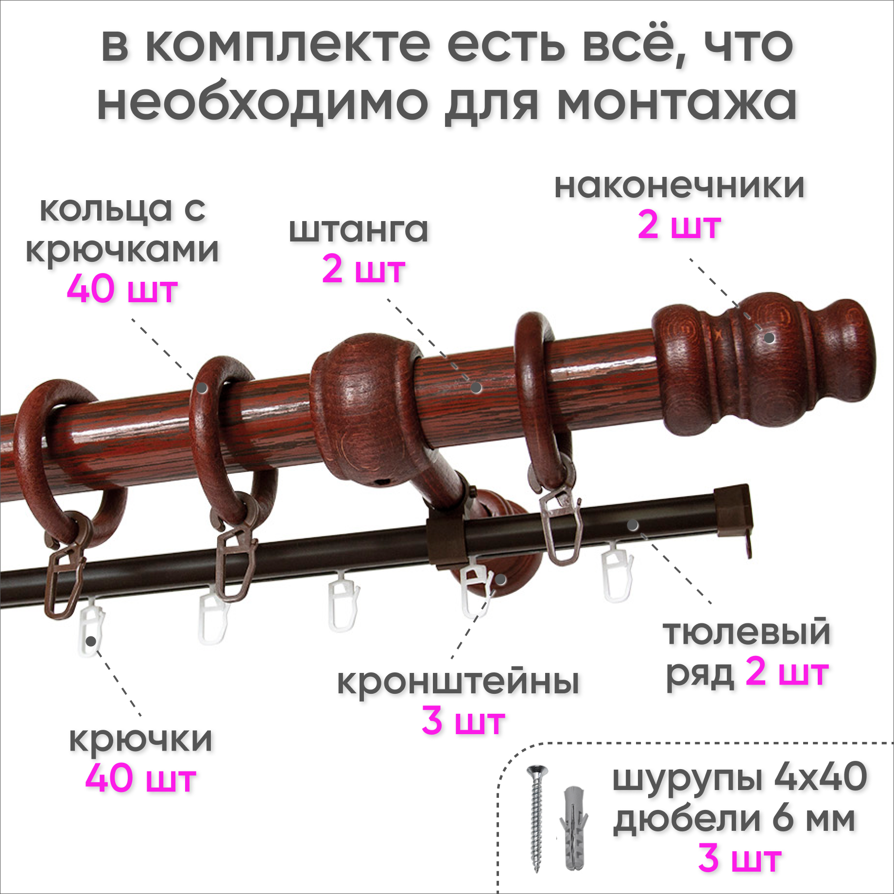 Карниз для штор и тюля Уют, круглый, настенный, деревянный, 2 ряда, цвет: Красное дерево, 325 см
