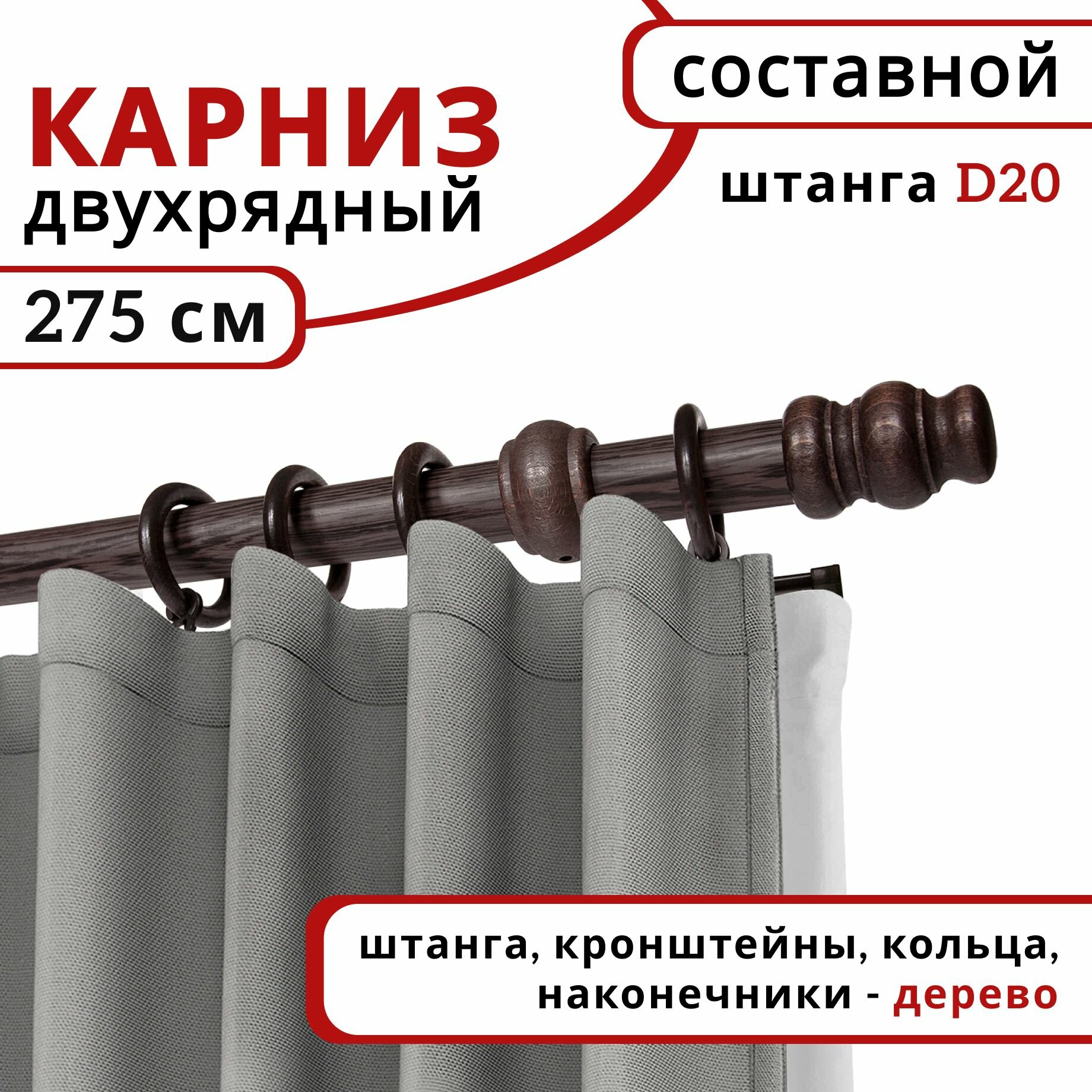 Карниз круглый деревянный настенный двухрядный D20 275 см Темный орех