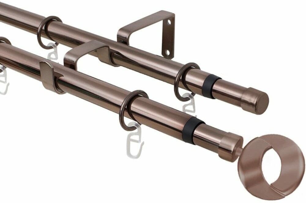 Купить Карниз металлический двухрядный раздвижной Эскар Кольцо, коньяк 16/19мм, 160-320