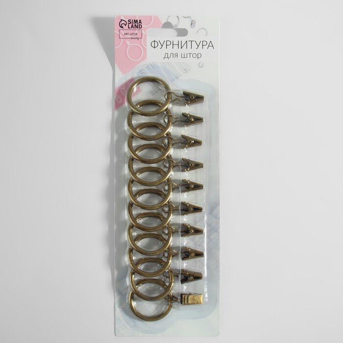 Купить Кольцо для карниза, с зажимом, d = 30/38 мм, 10 шт, в блистере, цвет бронзовый